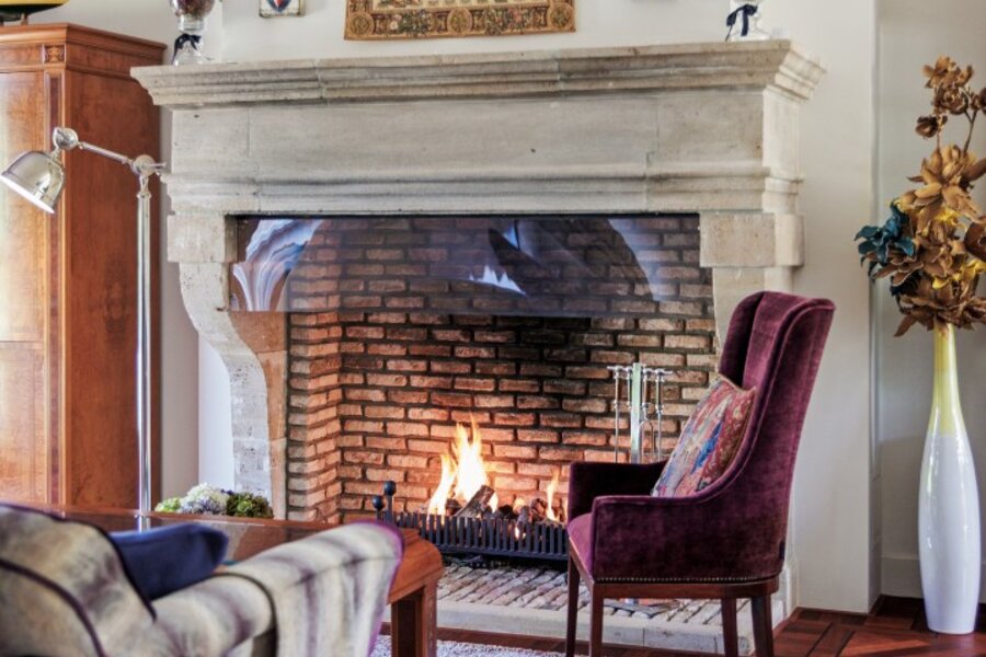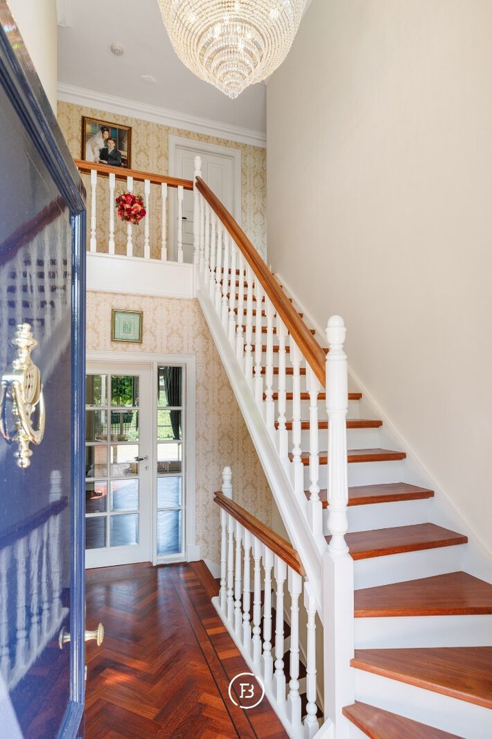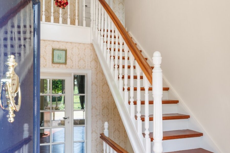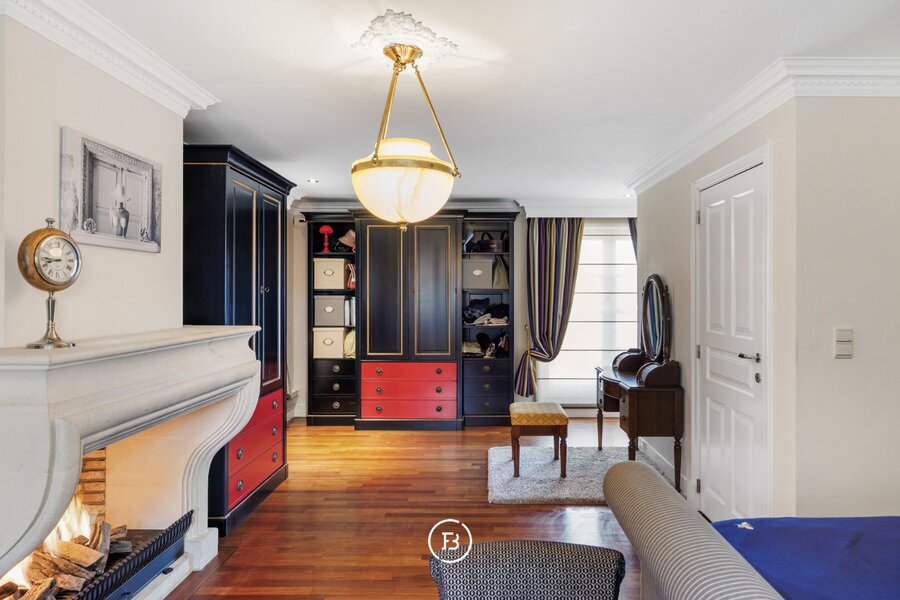 Au premier étage se trouve la chambre principale avec sa propre cheminée et un accès direct à une grande terrasse ensoleillée donnant sur le jardin bien entretenu.