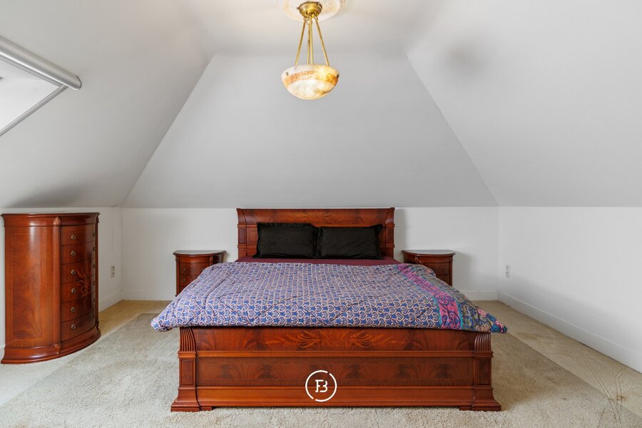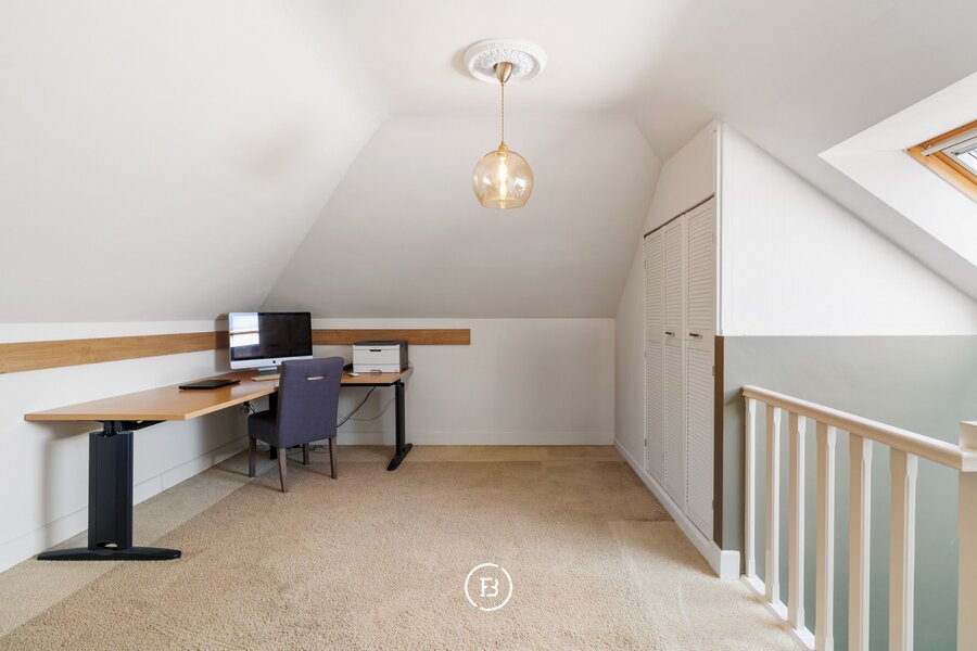 Il y a également une deuxième chambre, un grand bureau et une salle de bains confortable avec baignoire, douche et toilettes. Le grenier offre une chambre d'amis supplémentaire et un espace polyvalent qui sert actuellement de deuxième bureau, mais qui peut également être aménagé en chambre supplémentaire ou en espace de loisirs.