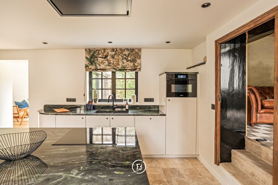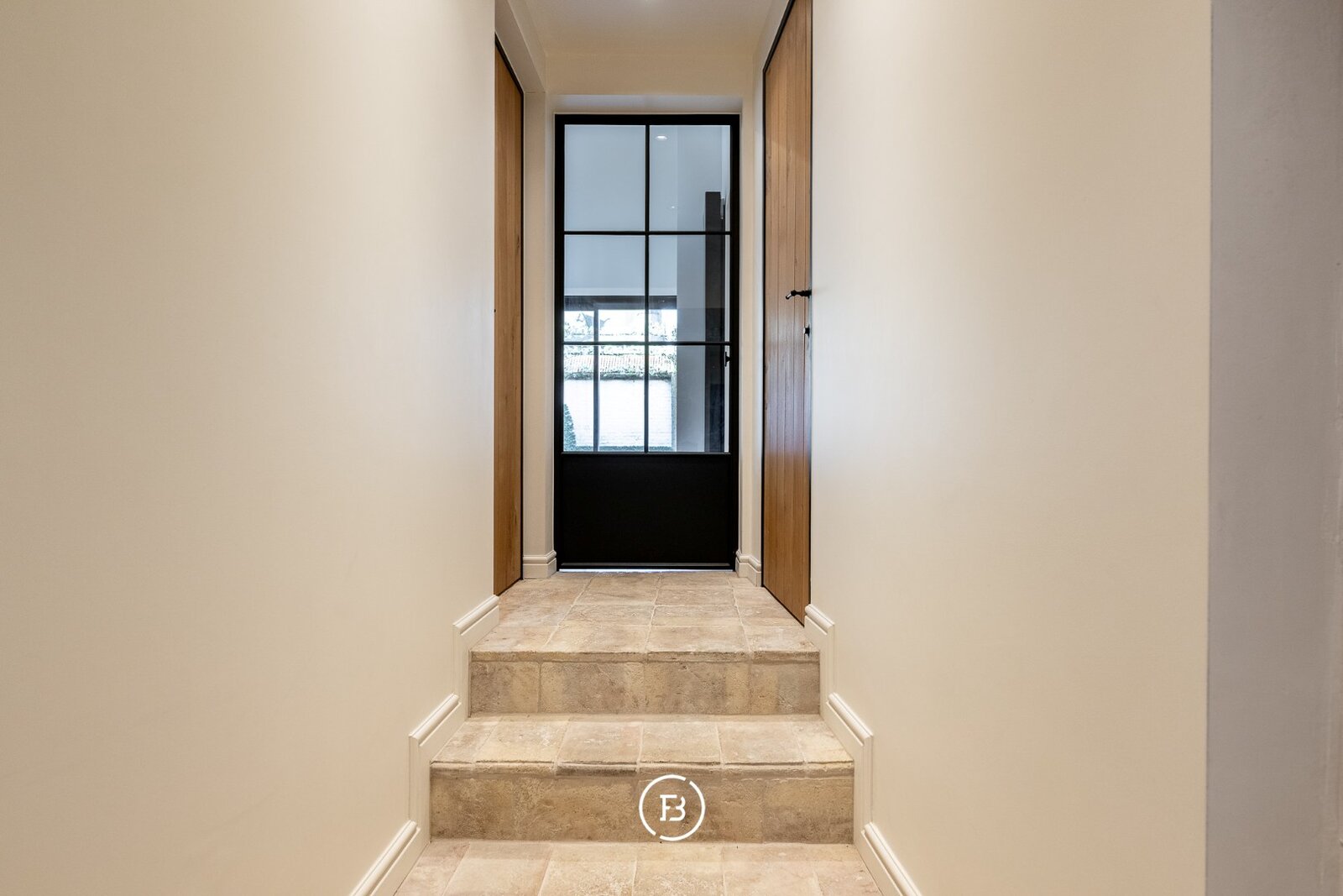 Un hall d’entrée spacieux avec toilette invités vous accueille chaleureusement. Le rez-de-chaussée comprend un vaste espace salon et salle à manger lumineux, avec de grandes baies vitrées donnant accès à la terrasse ensoleillée. À côté, vous trouverez un salon séparé et convivial, ainsi qu’une cuisine entièrement équipée avec accès direct au jardin – un vrai plaisir pour les amateurs de cuisine et de convivialité.