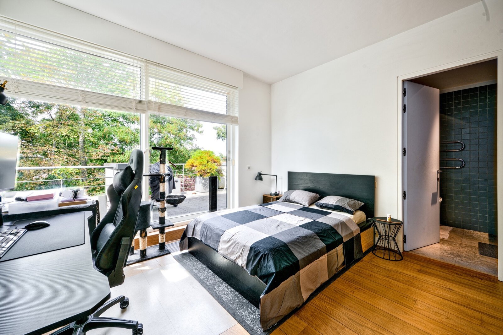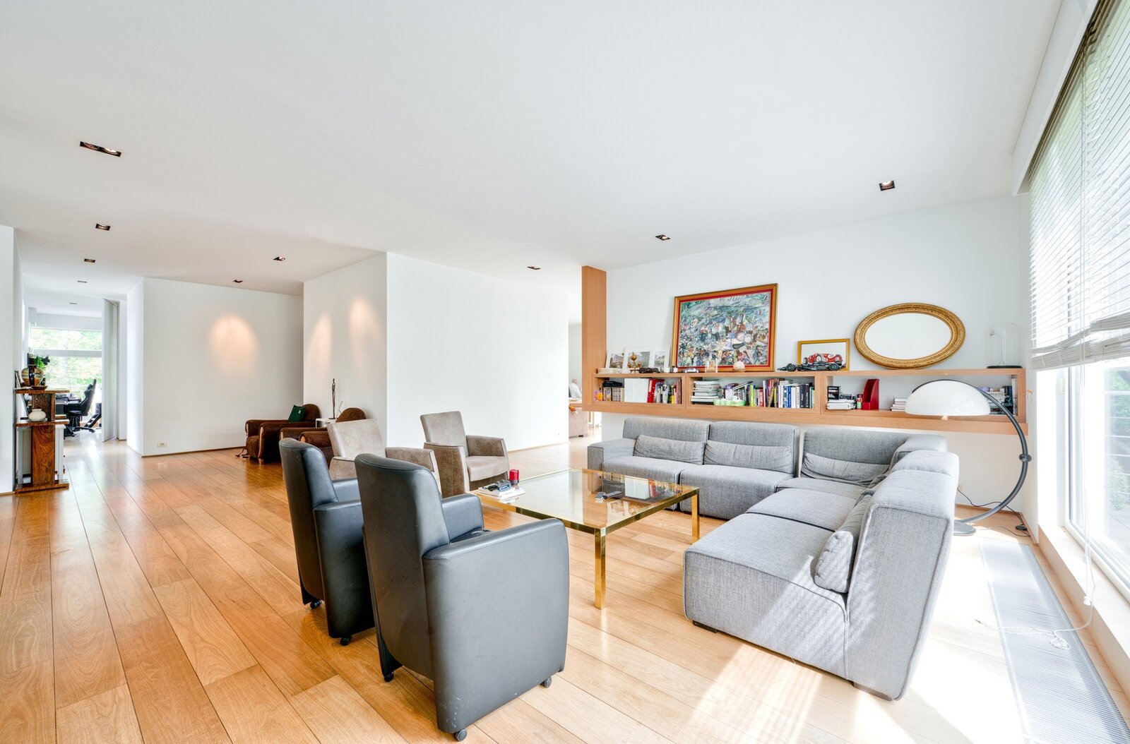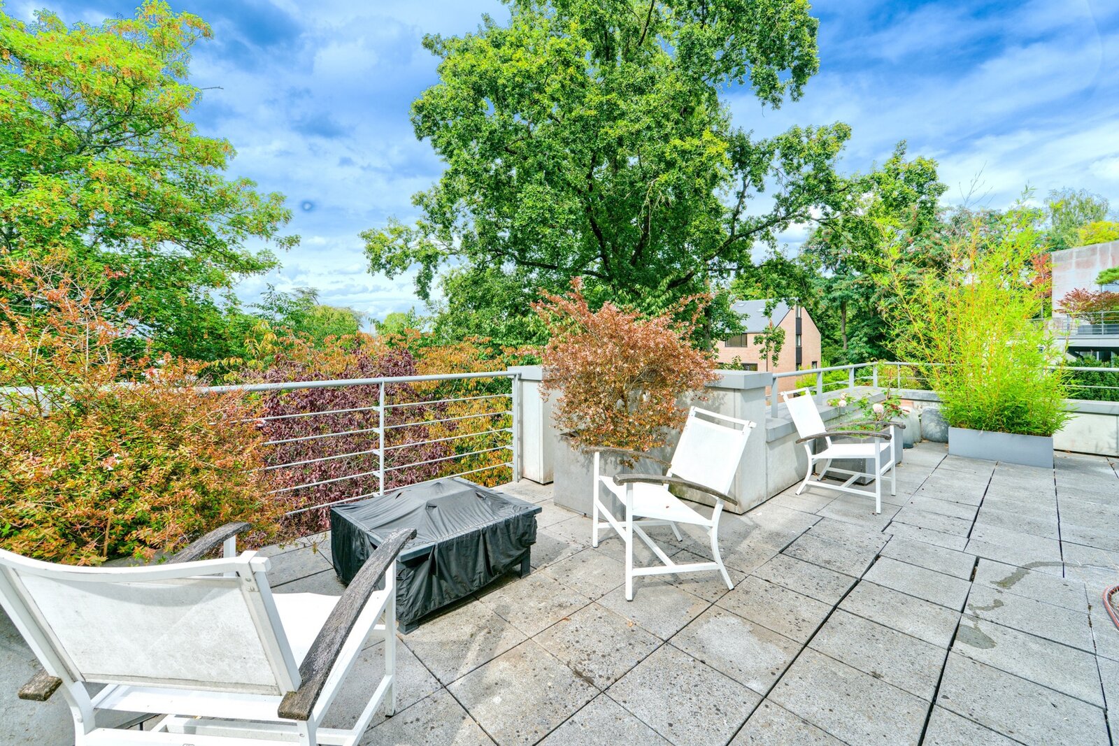 Dans une résidence contemporaine signée par l’architecte Corbiau, ce superbe penthouse de ±265 m² situé au dernier étage séduit par ses volumes, sa luminosité et ses finitions originales. La terrasse de ±150 m², en grande partie en façade, prolonge agréablement les espaces de vie. Le bien comprend de vastes pièces de réception, une cuisine entièrement équipée, un bureau, ainsi que trois grandes chambres, chacune avec salle de bains attenante et dressing. Un garage fermé pour deux voitures, une buanderie et une cave complètent l’ensemble. Provision mensuelle pour charges : ±450 €. . PEB : D-.