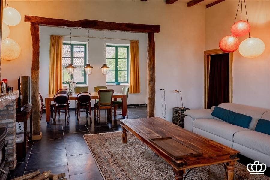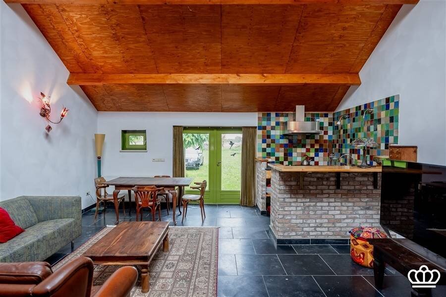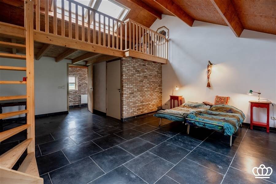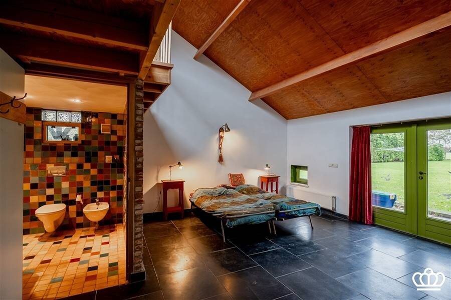 De voormalige schuur onderging een verbluffende metamorfose! Een oase van rust met een gezellige leefruimte en open keuken, slaapkamer met mezzanine, badkamer de perfecte setting voor een atelier, galerij ,een inspirerende uitvalsbasis voor coaching en/of workshops. Of dient als hetideale verblijf voor gasten maar ook als zorgwoning of praktijk aan huis een droomkans! De tuin is op natuurlijke wijze geïntegreerd in de landelijke omgeving. De grote stal (900 m²!) kan worden gebruikt voor opslag of is met aanpassingen in te richten als hobbyruimte (voor dieren).