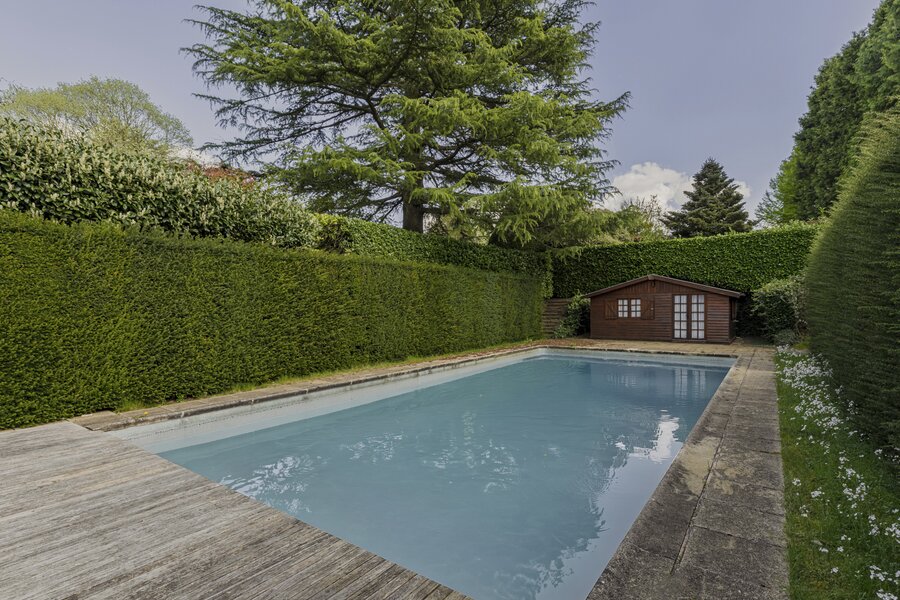 À proximité du parc de Tervuren, de la British School et du Royal Golf Club du Ravenstein, dans un environnement résidentiel calme et préservé, cette propriété familiale érigée en 1952 développant une superficie brute de ± 450 m² est implantée au cœur d’un parc paysager de ± 80 ares idéalement orienté. Agrémentée d'une piscine extérieure, elle offre un cadre de vie élégant à repenser au goût du jour.