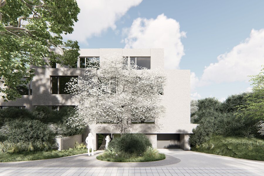 WOLUWE-SAINT-PIERRE – Découvrez le tout nouveau projet de prestige "VILLA LOBAR" présenté par Vaneau Lecobel. Ce projet de haut standing exclusif est situé le long de l'avenue de Tervuren à Woluwe-Saint-Pierre. Le projet est un espace de vie unique composé d'un bâtiment contemporain aux lignes intemporelles signé par le bureau d’architecture Marc Corbiau. Ce magnifique appartement penthouse 3 chambres de ±278 m² se compose d'une grande terrasse exposée plein Sud de ±98 m² au 2ème et dernier étage de la résidence. L'appartement se compose d'un hall avec vestiaire avec WC invité. Un spacieux séjour et salle à manger avec accès direct à la terrasse dont une partie couverte, une cuisine ouverte super équipée (Structure Plus), une buanderie/local technique. Le hall de nuit dessert un WC séparé, la chambre parentale avec salle de bains (baignoire, double lavabos, WC) attenante, dressing et accès direct à la terrasse, et les deux autres chambres avec leurs propres salles de douches attenantes. Le projet propose un développement harmonieux et respectueux de l'environnement au cœur de la nature de Woluwe-Saint-Pierre, à la lisière de la forêt et du parc de Woluwe. De plus, le bien bénéficie de finitions et équipements haut de gamme de qualité (pompe à chaleur, ventilation double-flux, récupération des eaux de pluie), ainsi que d'excellentes performances acoustiques et énergétiques (PEB A-). Une cave est inclus dans le prix. Le parking (obligatoire) en supplément. La vente est soumise à la TVA (21%) pour la construction et aux droits d’enregistrement (12,5%) pour le terrain. N’hésitez pas à nous contacter pour plus d’informations au 02/669.21.70 ou par e-mail à promotion@vaneau-lecobel.be