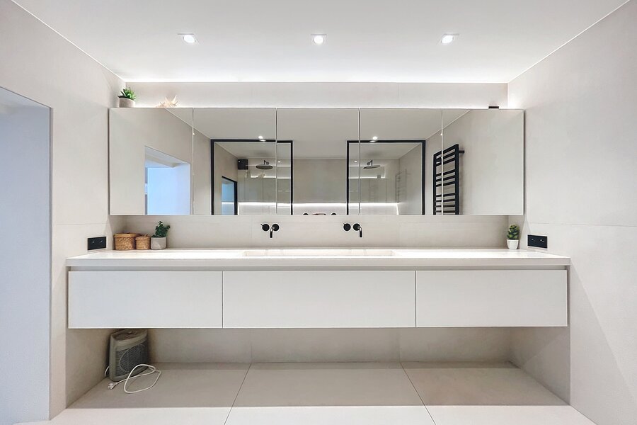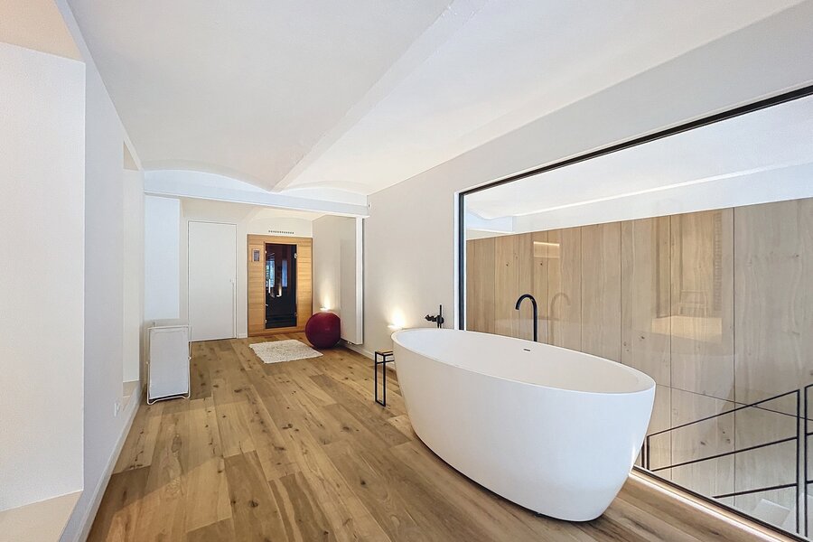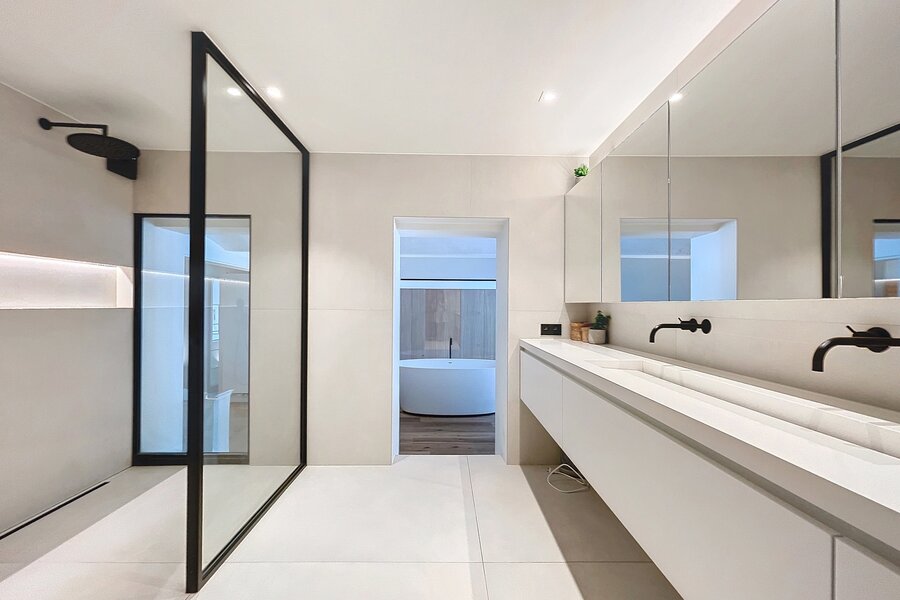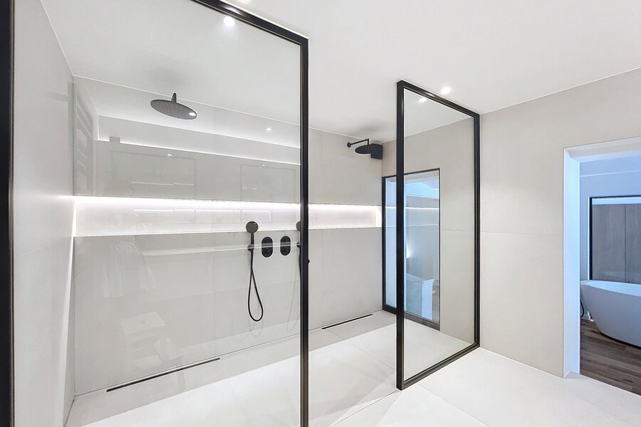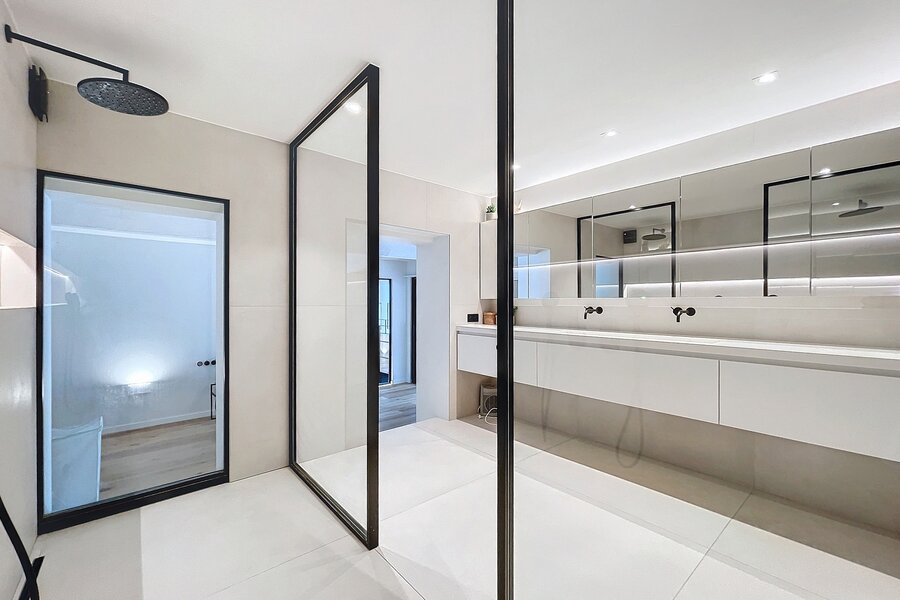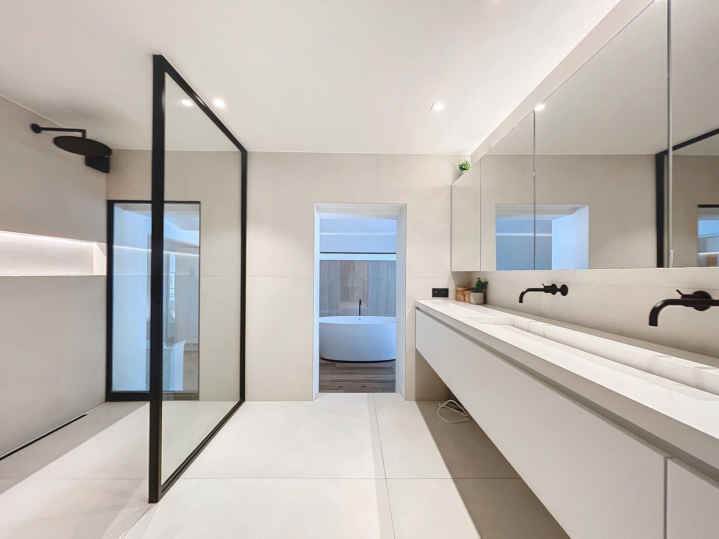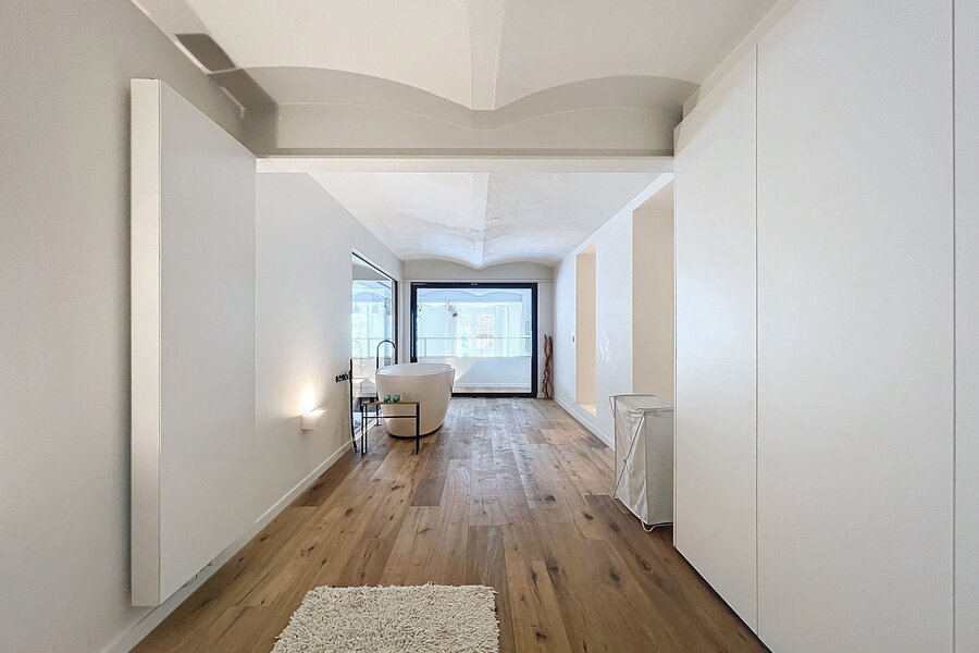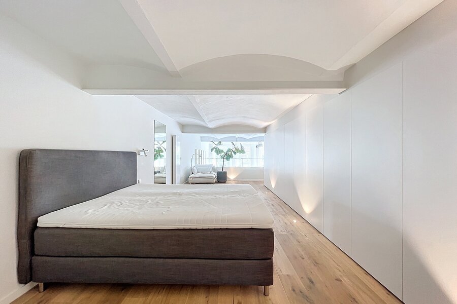 Dès l'entrée, on est immédiatement séduit par l'impressionnant hall d'entrée qui mène au vestiaire et aux toilettes pour invités, à un spacieux débarras et à un bureau équipé d'armoires encastrées. Le tout est suivi d'un espace ouvert bénéficiant d'une lumière naturelle abondante dans lequel se trouvent l'espace de vie et la cuisine ouverte. La cuisine dispose de toutes les commodités et de tous les articles ménagers, depuis le réfrigérateur américain, le four, le four à vapeur, le four à micro-ondes jusqu'à toutes sortes d'ustensiles de cuisine. L'îlot de cuisine peut accueillir 8 personnes. À côté de la cuisine et du hall d'entrée se trouve une buanderie/rangement pratique et spacieux avec des placards intégrés et un lave-vélos pour laver vos bicyclettes. En outre, cette propriété comprend une salle polyvalente qui peut être utilisée comme salle de jardin, bureau supplémentaire, espace de vie supplémentaire ou similaire. Le premier étage comprend 2 chambres à coucher, chacune avec des armoires encastrées, une pièce de rangement/un dressing supplémentaire, une luxueuse salle de bains avec double douche, baignoire, cabine infrarouge et des toilettes séparées. Ce loft bénéficie également d'une terrasse exceptionnellement spacieuse accessible depuis l'espace de vie et/ou la salle de jardin. Enfin, 2 places de parking sont disponibles dans le parking souterrain où se trouve également un local à vélos fermé à clé.