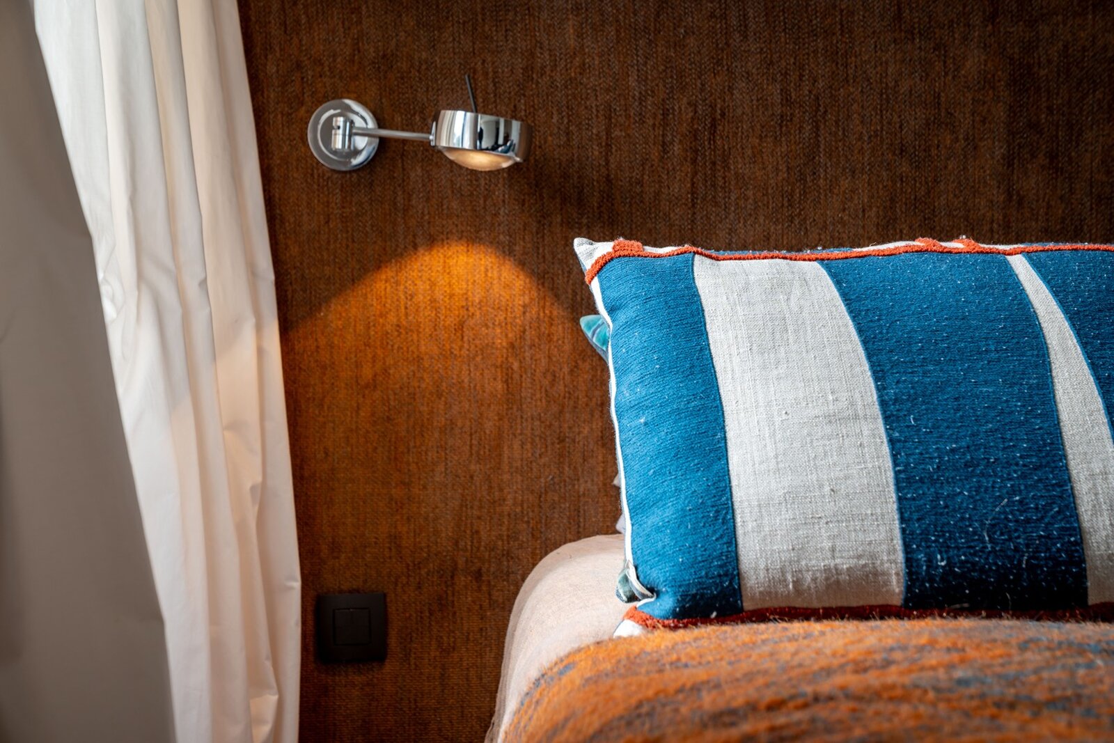 Les bâtiments en briques brunes ancrées sont regroupés autour d’une cour aujourd’hui aménagée en jardin. Des menuiseries authentiques, des fenêtres à volets et d’autres détails de caractère contribuent à l’originalité du domaine.