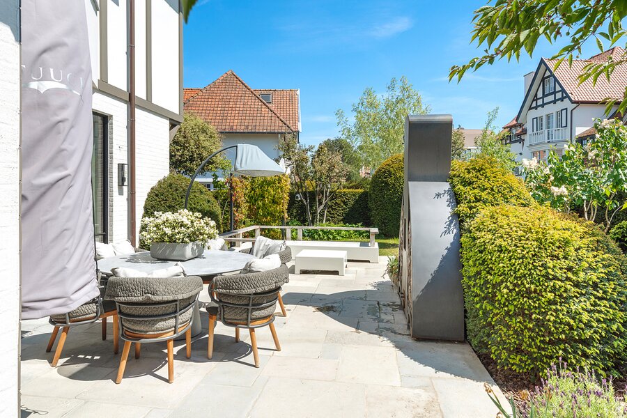 Villa individuelle construite dans le style typique Zoutoise, dans un sentier dans le vieux Zoute, à proximité de l'église des pères Dominicains et la mer. Composition: entrée avec vestiaire et toilette. Agréable séjour et salle à manger avec des portes fenêtres ouvrant sur terrasse et jardin plein sud. Cuisine entièrement équipée. Chambre froide. Buanderie. Sauna finlandais avec douche/hammam. Au premier étage: 4 grandes chambres à coucher, 2 salles des bains et 2 salles de douche. 2ème étage: 1 chambre à coucher et 1 salle de douche. Grande cave. Garage intérieure (ascenseur pour voitures) pour 6 voitures et parking extérieur pour 4 voitures. Salle de fitness. Cave à vin climatisée. Classe énergétique A. Chauffage au sol. Climatisation. Arrosage automatique. Domotique, alarme et vidéosurveillance. Robot de jardin. Visites sur rendez-vous dans l’un de nos bureaux. Fortement recommandé.