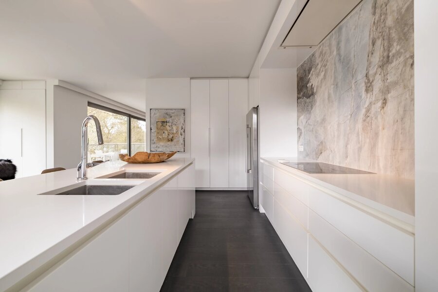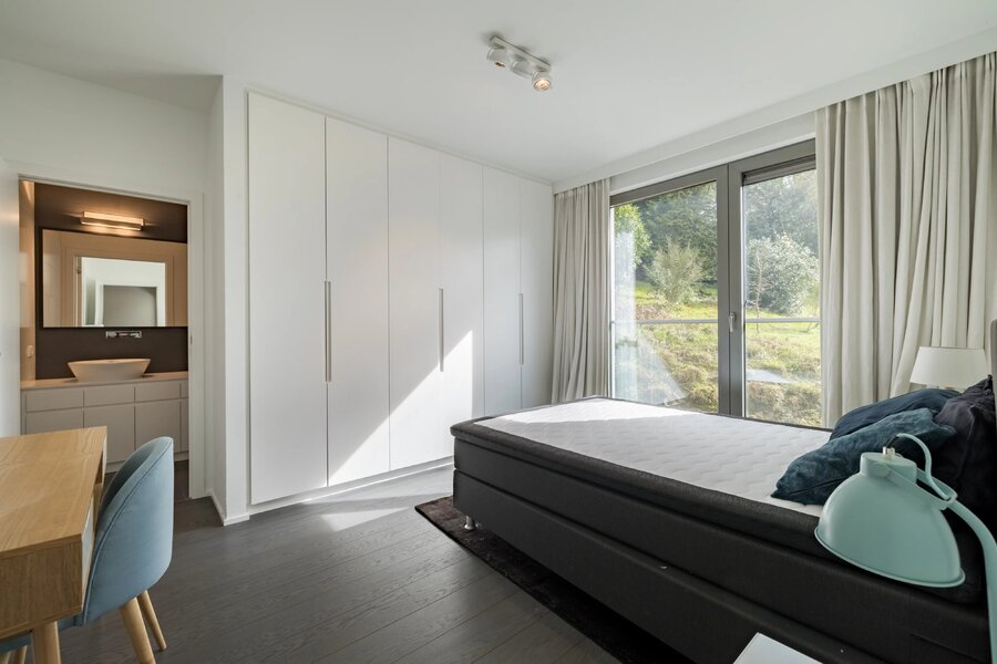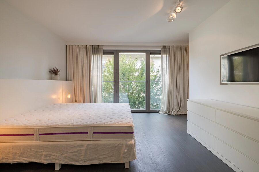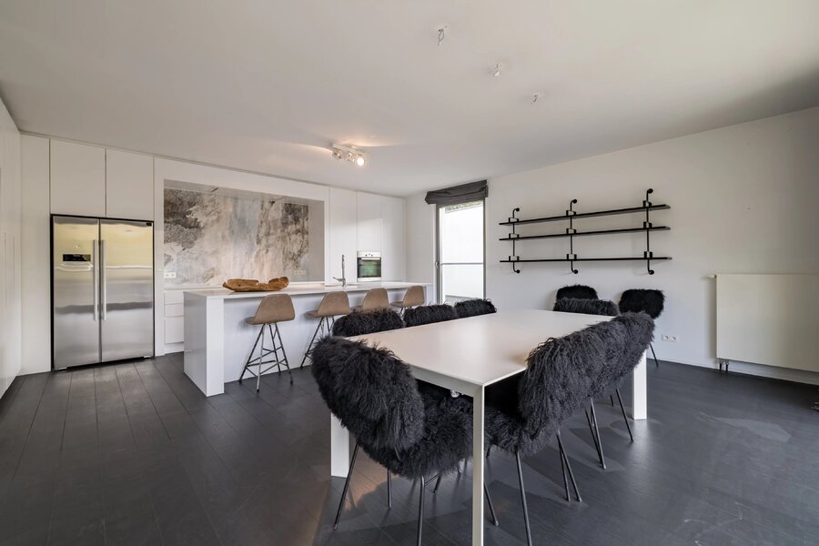 Uccle - Fort Jaco - Barnes Brussels vous invite à découvrir ce très bel appartement contemporain d'une superficie de +/- 263m2 (source PEB) dans un petit clos résidentiel au calme à deux pas des commerces du Fort Jaco. Il se compose d'un vaste salon, une terrasse bien orientée Sud-Ouest, une cuisine US hyper équipée, un grand bureau, trois chambres, une salle de bains, deux salles de douche, deux emplacements de parking, une cave.PEB C+