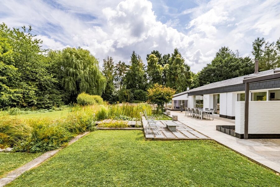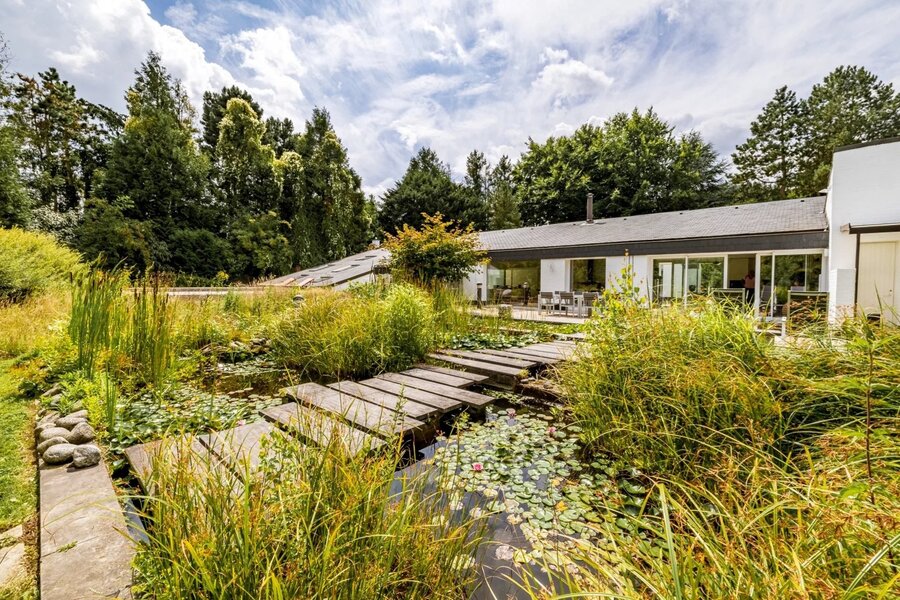 Située dans un écrin de verdure, à l’abri des regards, cette villa d’architecte conjugue calme, intimité et accessibilité. Implantée sur une parcelle paysagée de ±59 ares, elle bénéficie d’un environnement serein, tout en restant proche des facilités, des transports en commun et du centre de Hoeilaart.