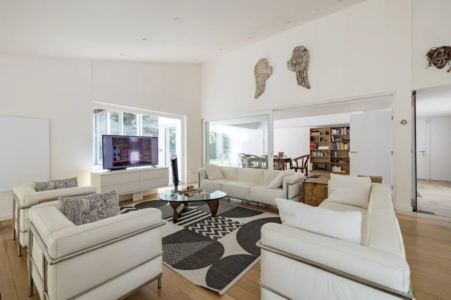 Développant une surface habitable d’environ 600 m², la maison se compose comme suit : un vaste hall d’entrée avec vestiaire et toilettes invités, un séjour lumineux d’environ 70 m² avec feu ouvert et grande baie vitrée donnant accès à la terrasse principale orientée plein sud, un bureau/salle de jeux baigné de lumière avec accès à une seconde terrasse équipée d’un espace barbecue, une cuisine entièrement équipée, une suite parentale avec dressing et salle de bains complète, deux chambres supplémentaires avec chacune leur salle de douche, une buanderie, un garage pour trois véhicules, ainsi que deux toilettes séparées.
