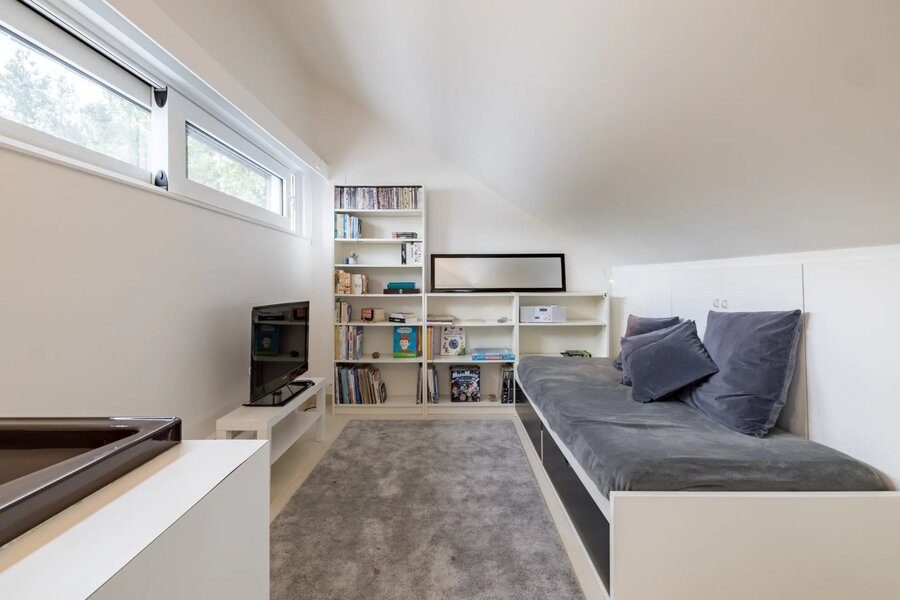 À l’étage, deux chambres supplémentaires viennent compléter l’espace nuit.