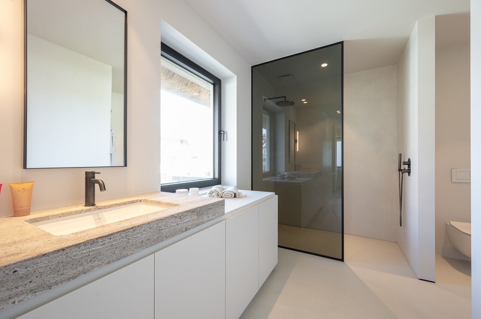 Villa de nouvelle construction à Duinenwater avec une orientation idéale. Cette villa de construction récente est située à quelques pas du lac idyllique à Duinenwater, entourée de verdure, pas loin de la mer et à proximité du nouveau terrain de golf. Hall d'entrée avec vestiaire et toilettes. Salon lumineux avec cheminée à gaz. Salle à manger spacieuse avec accès à la terrasse. Jardin ensoleillé avec piscine. Cuisine moderne ouverte avec coin petit déjeuner équipée de tous les appareils électroménagers. Débarras. Premier étage : Chambre principale avec dressing et salle de bains (toilettes, douche, double lavabo et baignoire). Deuxième chambre spacieuse avec bureau, armoires encastrées et salle de bains (double lavabo, toilettes et douche). Troisième chambre avec armoires encastrées et salle de bains (lavabo, douche et toilettes). Buanderie avec connexion pour machine à laver et sèche-linge. 2ème étage : salle polyvalente/bureau. 4ème chambre avec possibilité de créer une 4ème salle de bains. Local technique/de rangement. Possibilité d’ajouter un ascenseur résidentiel. Garage pour 2 voitures et plusieurs places de parking. Contactez Knokke Real Estate pour plus d'informations.