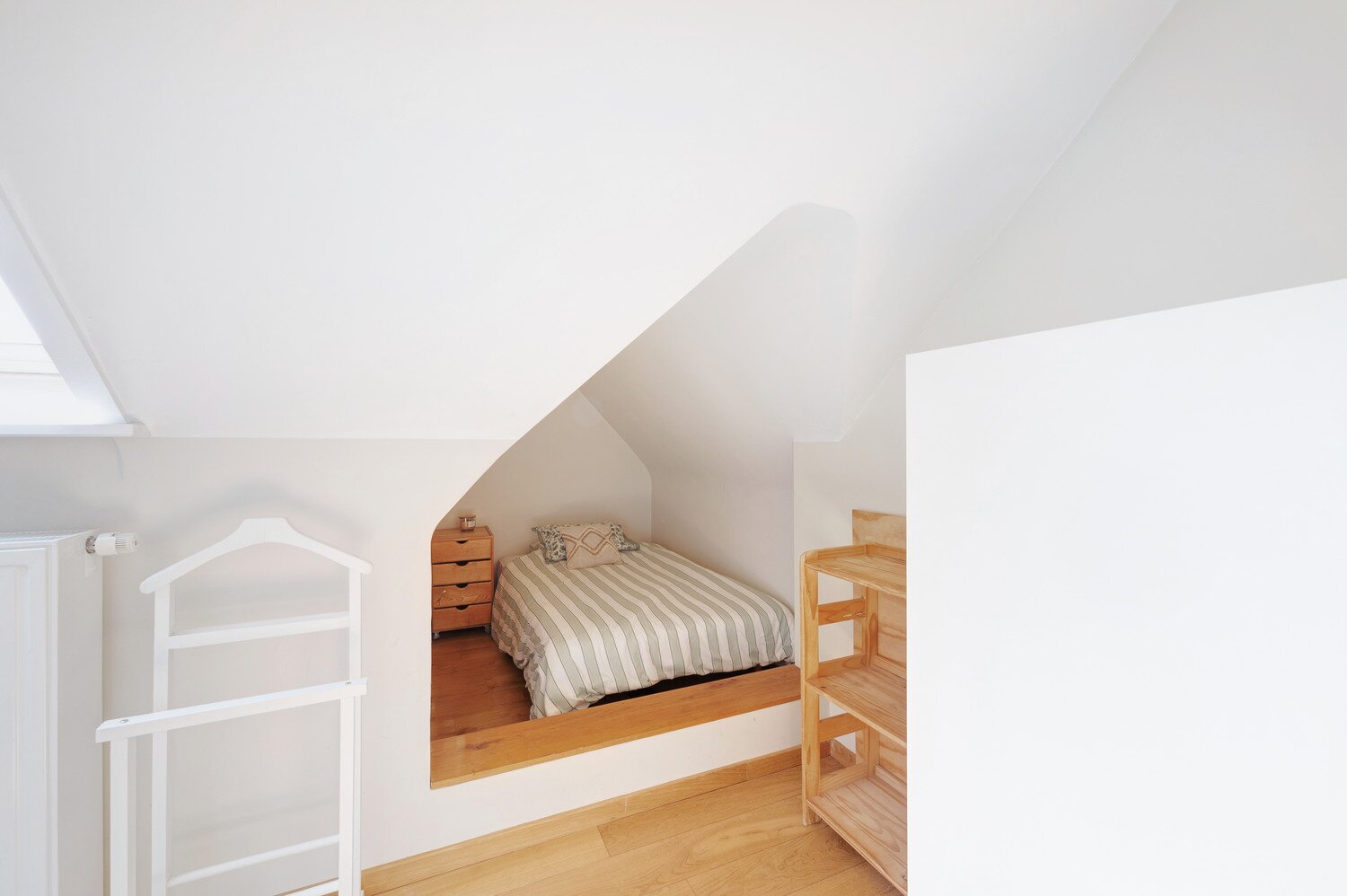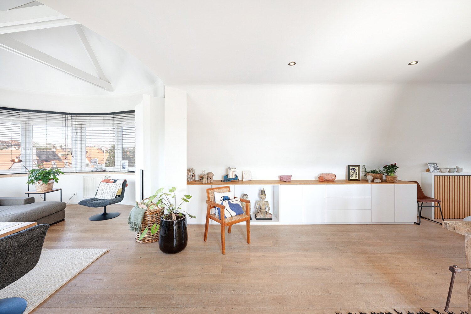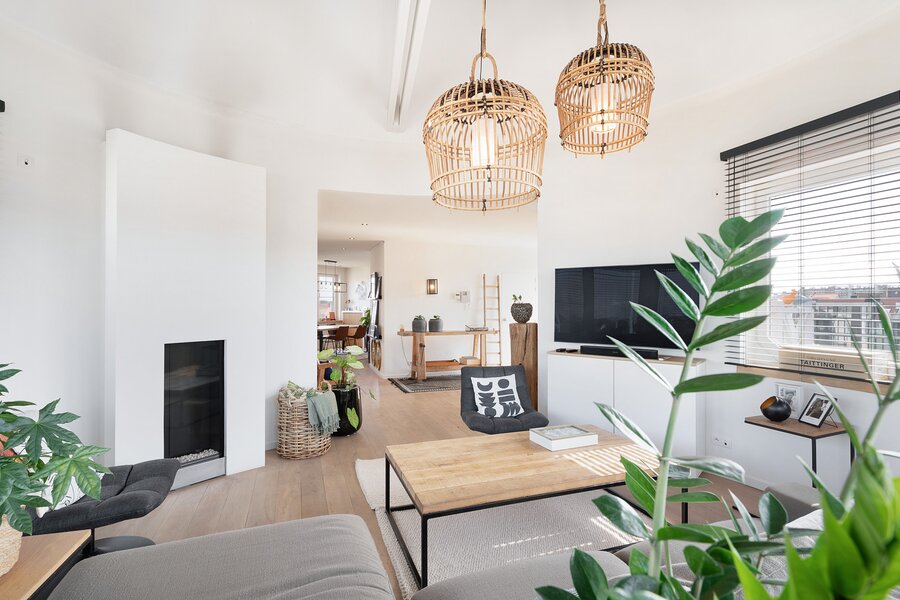 Dankzij de bijzondere vorm, meerdere gevels en de hoogte geniet het appartement bijna overal van daglicht en open zichten.