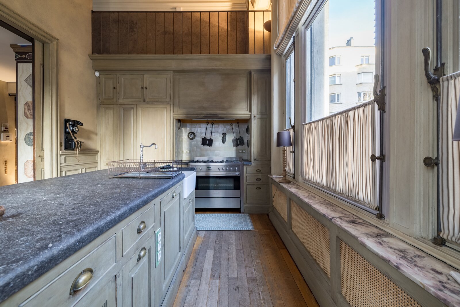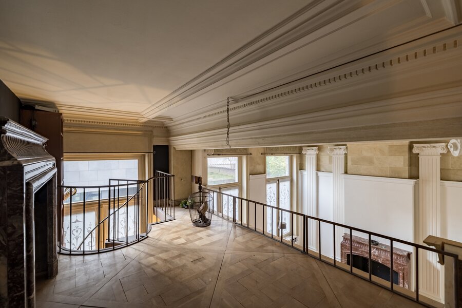 A proximité de la Place du Châtelain et de l'Avenue Louise, rez-de-chaussée duplex spectaculaire d'une surface de ± 185 m² , doté d'une cour anglaise situé dans un bel immeuble Impressionant néo classique de 1890 offrant un salon agrémenté d'une mezzanine, salle à mangée séparée, cuisine hyper équipée. Au niveau cour anglaise :pièce polyvalente pour home cinéma, chambre principale avec dressing , 2ème chambre ou bureau salle de bain/douche/wc. Cave. PEB D