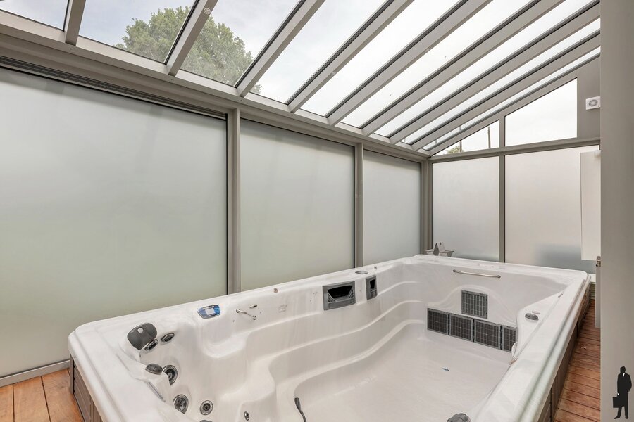 Geniet van tal van hoogwaardige voorzieningen zoals een wijnkelder, airco’s, zonnepanelen, een zonneboiler en een laadpaal voor 2 elektrische voertuigen. Naast de veranda vervolledigt een swim spa van Michael Phelps Signature de wellnessbeleving, naast een prachtig verwarmd zwembad met bankirai terras, vijver en een badhuis met toilet.