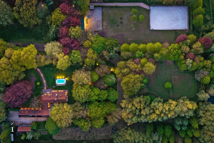 In een uitzonderlijk groen en discreet kader bevindt zich dit prachtige domein, waar rust, privacy en veel ruimte centraal staan. Het karaktervolle landhuis, oorspronkelijk gebouwd in 1972 en stijlvol gerenoveerd in 2015, is vandaag volledig instapklaar en biedt een bijzonder harmonieus samenspel van authenticiteit en hedendaags comfort.