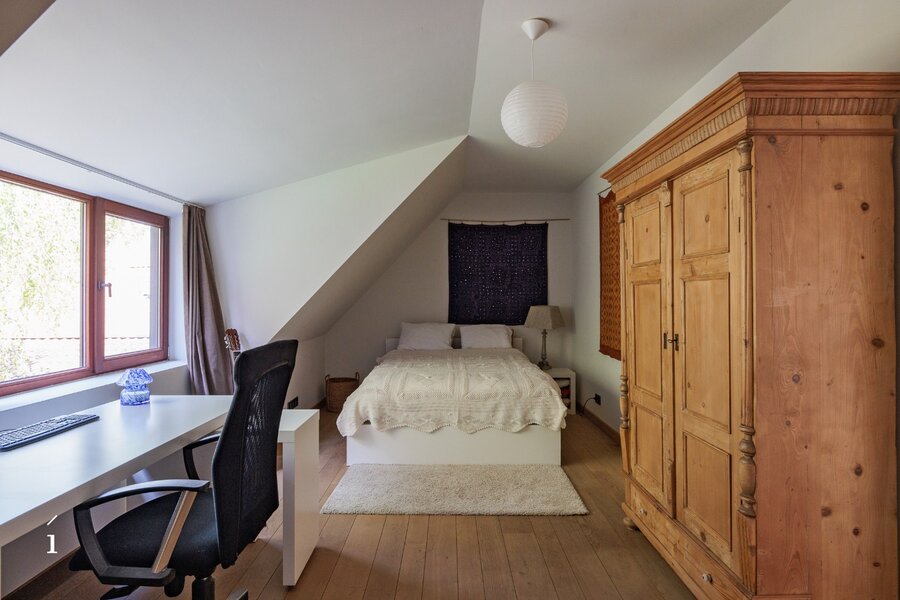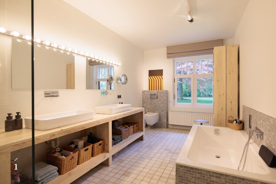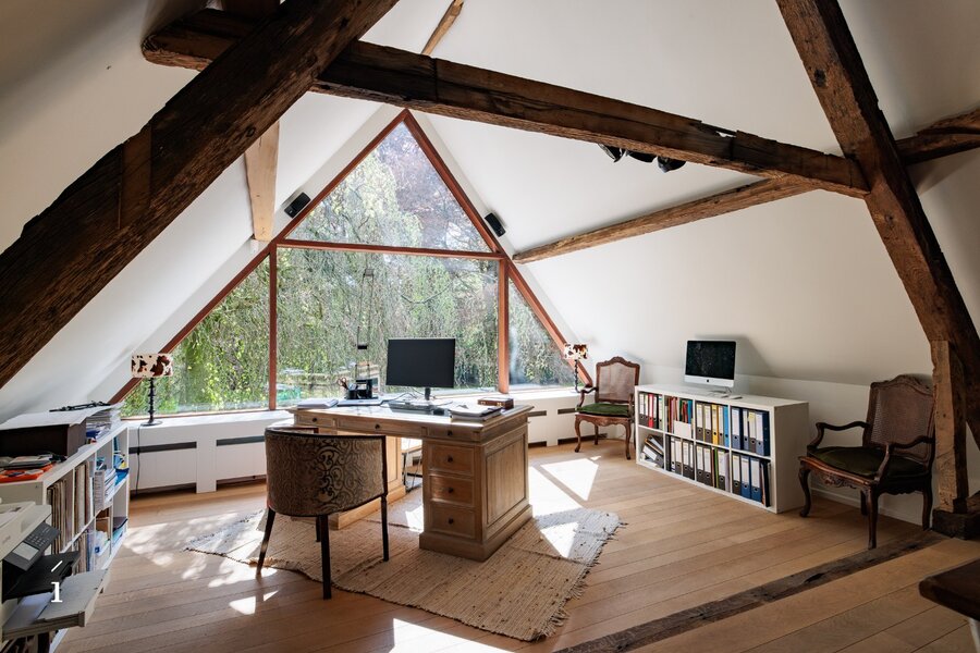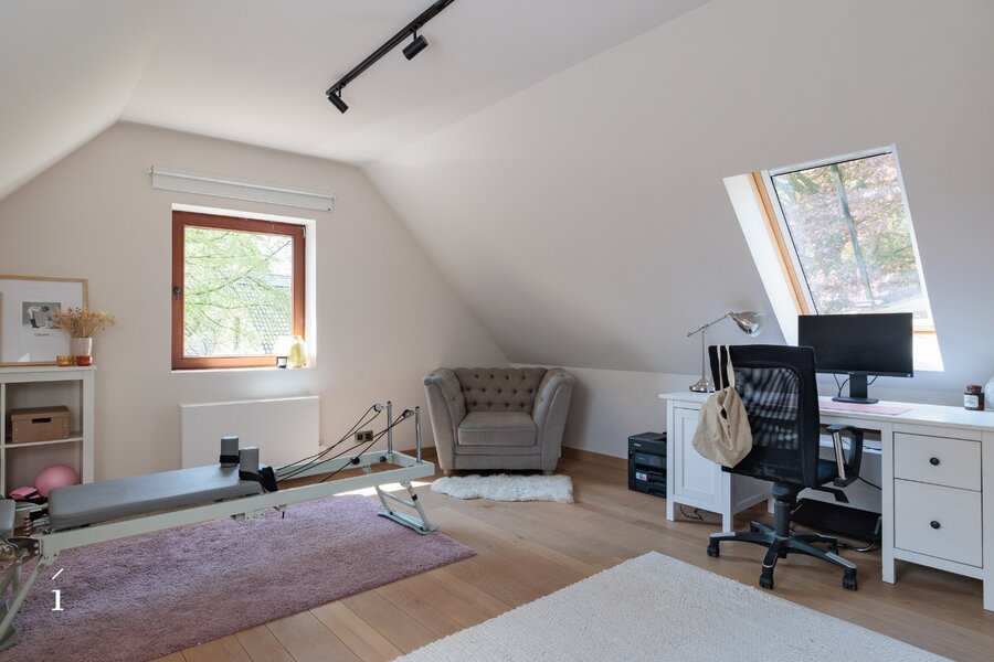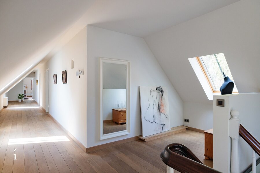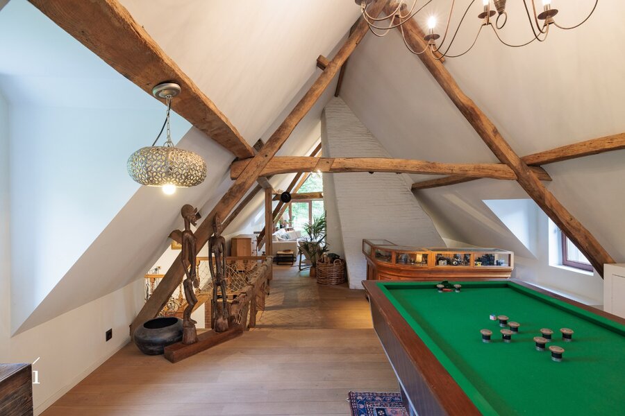 Met 5 slaapkamers, 3 badkamers en een doordachte, flexibele indeling biedt dit landhuis een zeldzame veelzijdigheid, zowel voor puur residentieel wonen als voor een elegante combinatie van wonen en werken. Het slaapgedeelte bevindt zich in een aparte zijvleugel, wat bijdraagt aan het gevoel van rust en privacy. In combinatie met de tweede inrit creëert dit bovendien interessante perspectieven voor een professionele invulling, waarbij privé en werk op een discrete en natuurlijke manier van elkaar gescheiden blijven. Ideaal voor vrije beroepen of voor wie vanuit huis wenst te werken, met een representatieve ontvangst in een warme, huiselijke omgeving.