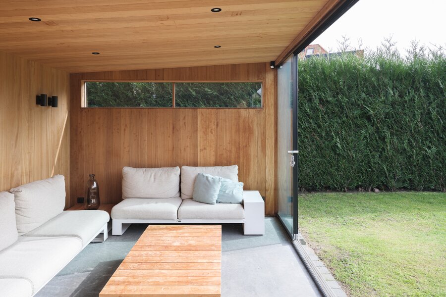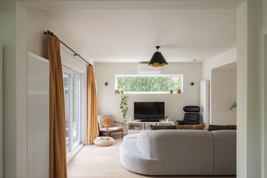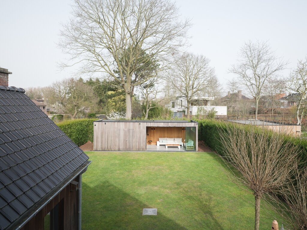 Als extra vinden we nog een sas naar een apart gastentoilet en naar de voormalige garage die op heden dienst doet als wasplaats en plaats voor alle technieken.