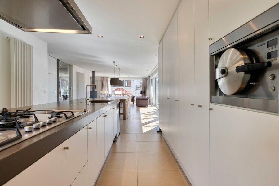 - une cuisine ouverte entièrement équipée avec de nombreux rangements ;