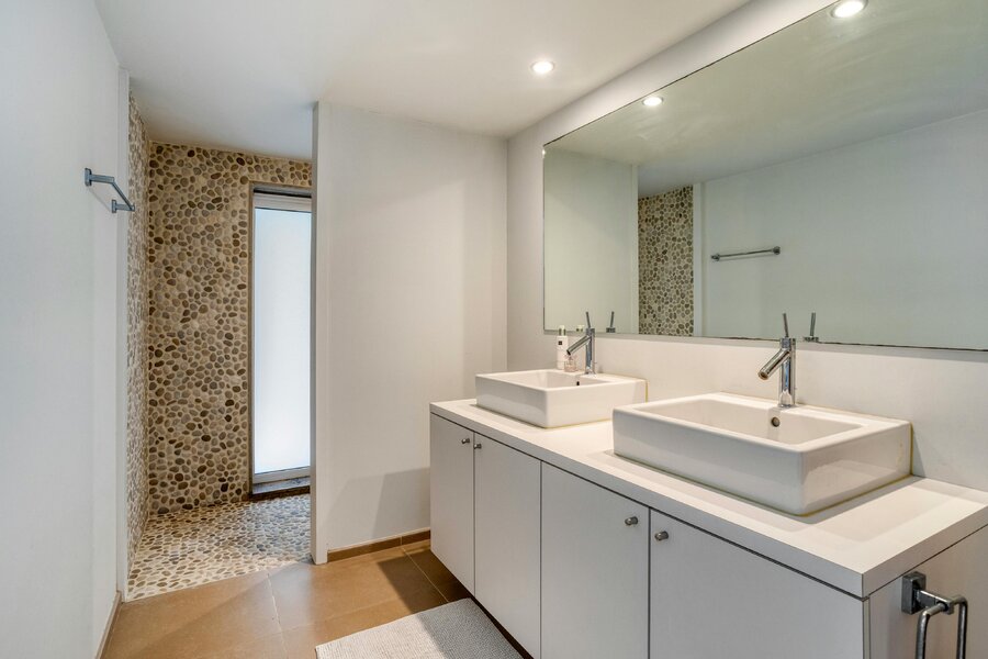 - 2 salles de bain avec douche à l'italienne, double vasque et une avec baignoire ;