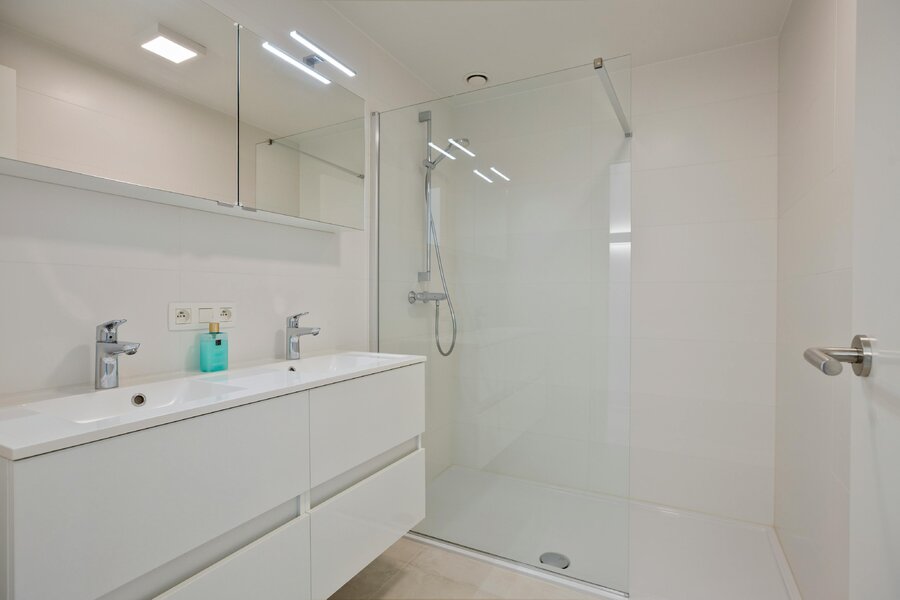 - 2 salles de bain avec douche à l'italienne et lavabo avec mobilier ;