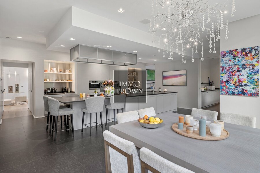 Au rez-de-chaussée: spacieux hall d'entrée avec vestiaire et toilettes invités, grand salon, salle à manger, cuisine hyper équipée avec coin à déjeuner, arrière-cuisine, salon télévision, bureau et second wc.
