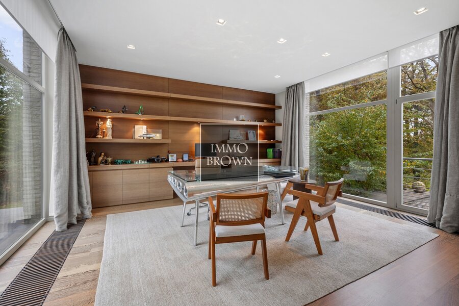 Exceptionnelle villa récente à vendre avec piscine intérieure, au fond d’une allée privative, située dans le prestigieux domaine du Golf du Bercuit.