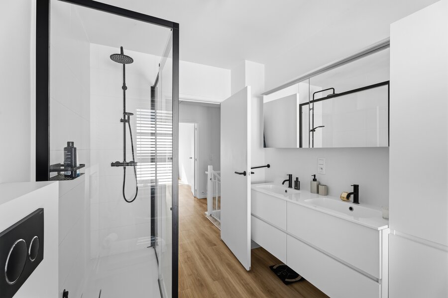Op de eerste verdieping beschikt de woning over een ruime master bedroom met ingemaakte kasten en een stijlvolle badkamer met ligbad, inloopdouche en toilet. Daarnaast zijn er nog twee volwaardige slaapkamers en extra bergruimte. De ingerichte geïsoleerde zolder biedt bijkomende mogelijkheden. Buiten geniet u van een ruim terras en een perfect georiënteerde, volledig afgesloten tuin, ideaal voor wie houdt van rust, privacy en zon. Extra troeven zijn onder andere de aanwezige zonnepanelen, een alarmsysteem en het hoogwaardige maatwerk dat doorheen de volledige woning werd toegepast. Een unieke kans voor wie op zoek is naar een kwalitatieve, instapklare villa op een topligging.