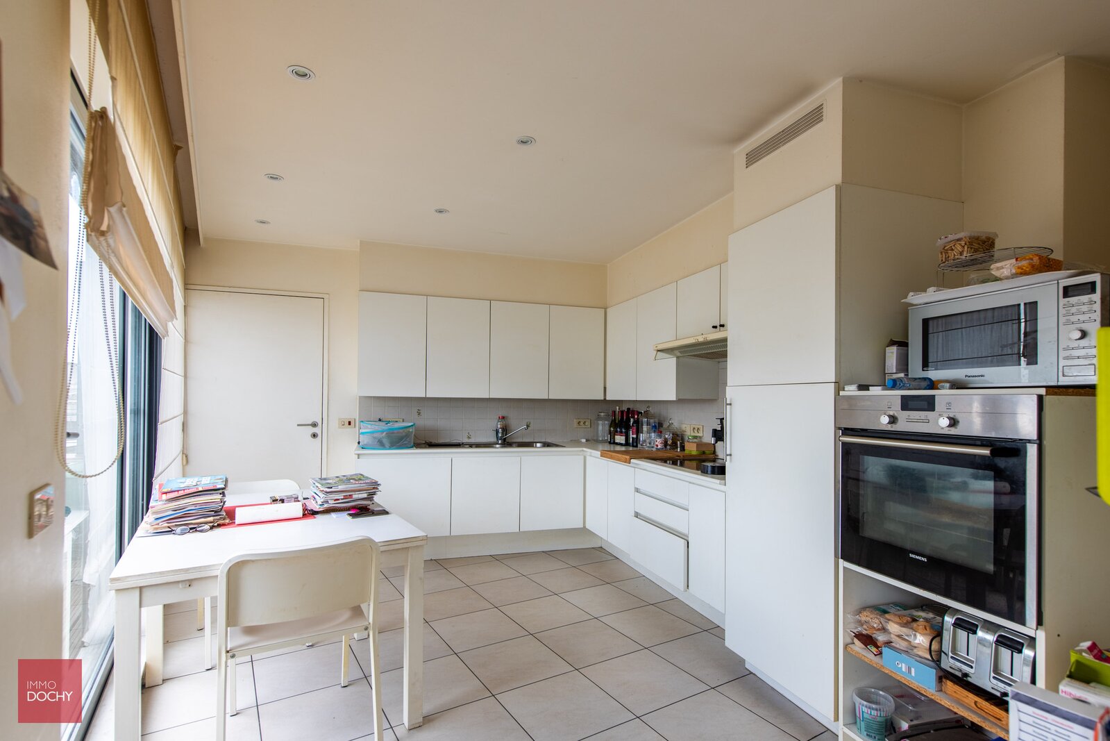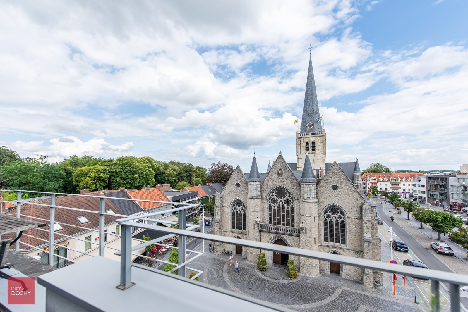 PENTHOUSE bestaande uit een ruime inkomhal, living, eetplaats en keuken met zicht op de kerk/markt, 2 bergingen, 3 slaapkamers, 2 badkamers, dressing, terrassen vooraan en achteraan, een autostandplaats en kelderberging. Mogelijkheid 2e autostandplaats bij te kopen. Opp. 184m²