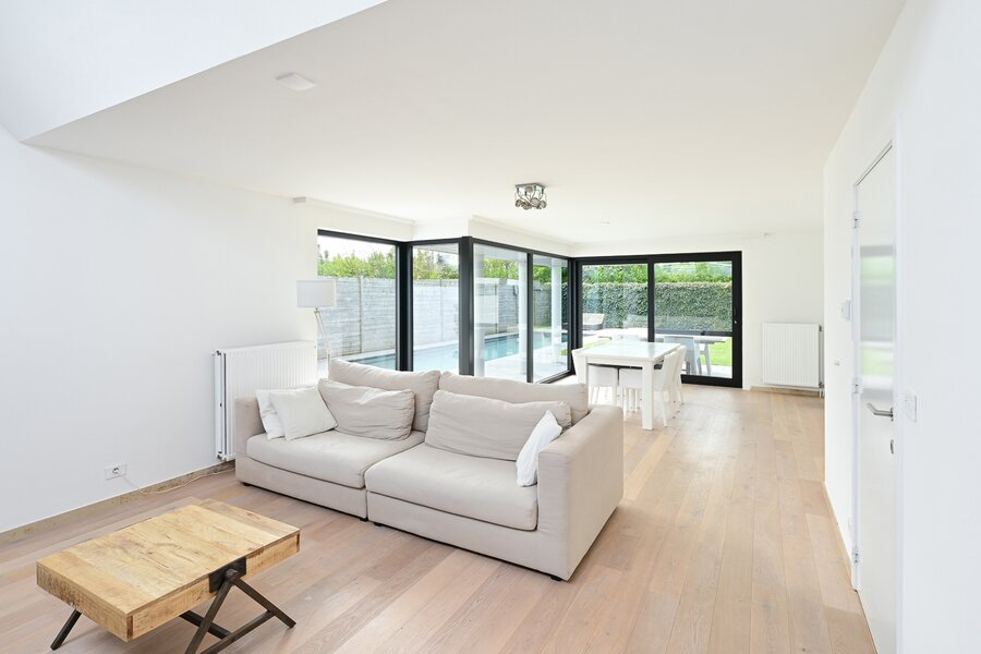 Composition : Entrée avec vestiaire et toilettes invités, spacieux séjour lumineux bénéficiant d'une belle vue sur le jardin et la piscine. cuisine avec tous les appareils électroménagers. À côté de la cuisine se trouve une spacieuse buanderie/débarras qui donne également accès au garage. Par le séjour et la cuisine vous avez accès au jardin avec piscine. Au premier étage se trouvent 4 chambres, 1 salle de bain et 1 salle de douche. Grenier spacieux. Garage intérieur et plusieurs places de parking devant la villa !