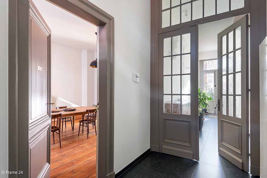 Deze pastorie van de Onze-Lieve-Vrouweparochie naar het ontwerp van Eugeen Gife is gelegen in een rustige straat van Hoboken met een bewoonbare oppervlakte van 408m², daterend van 1863-1864. Dit prachtig pand werd volledig gerenoveerd met respect en behoud van de authentieke elementen in 2014. Momenteel gebruikt als een ruimte voor zelfstandige beroepers maar kan ook dienst doen als kantoorruimtes, airbnb, hotel,... mits de nodige vergunningen aan te vragen. Op het gelijkvloers bevindt zich de ruime inkomhal met centrale trappenhal, eetkamer, leefruimte, bibliotheek, alsook de keuken met ontbijtplek en een aparte wasplaats. Dankzij de grote raampartijen in zowelde leefruimte als de keuken heeft men een mooi zicht op de zuid gerichte tuin met zicht op groen. De eerste verdieping biedt ruimte aan vier ruime kamers met elks zijn eigen badkamer. Verder naar de tweede verdieping vinden we nog een volledig afgewerkte polyvalente zolderruimte met eigen royale badkamer.