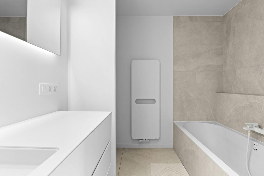 - Deux salles de bain confortables avec des radiateurs design et des installations sanitaires modernes. La deuxième salle de bains est pourvue d'une douche.