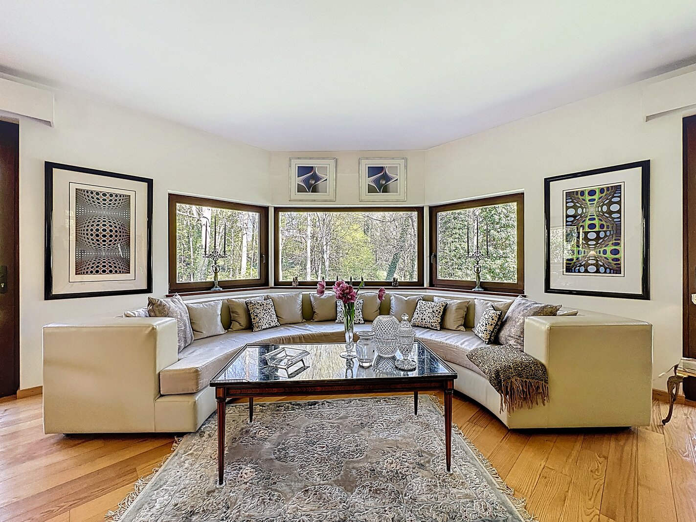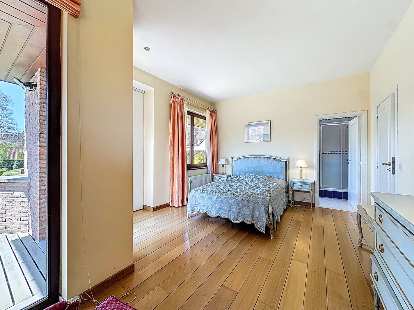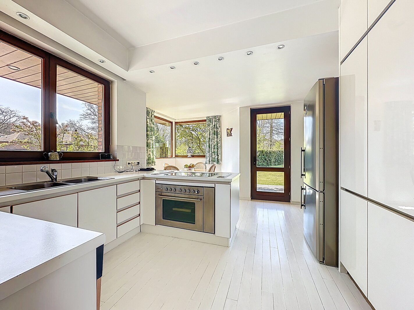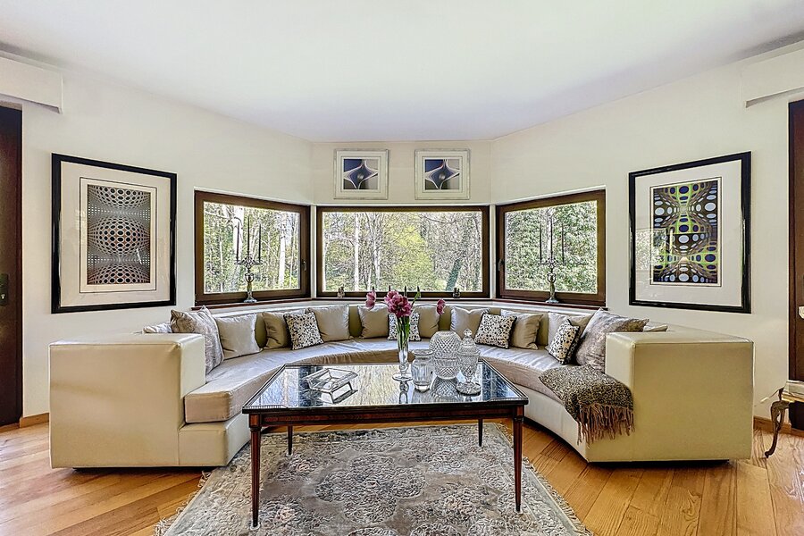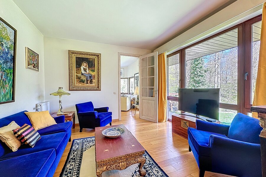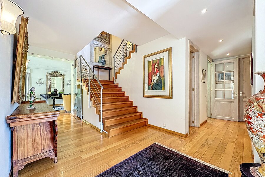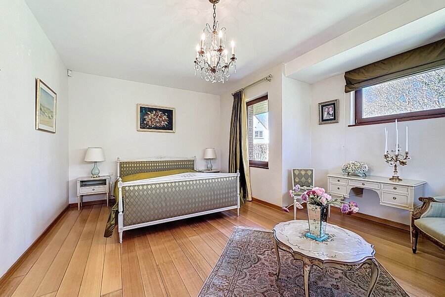 Cette magnifique villa d’architecte de ±350m² habitables est implantée sur un terrain de ±24 ares, dans un clos paisible, et offre une vue imprenable sur le bois qui borde l’arrière du jardin.