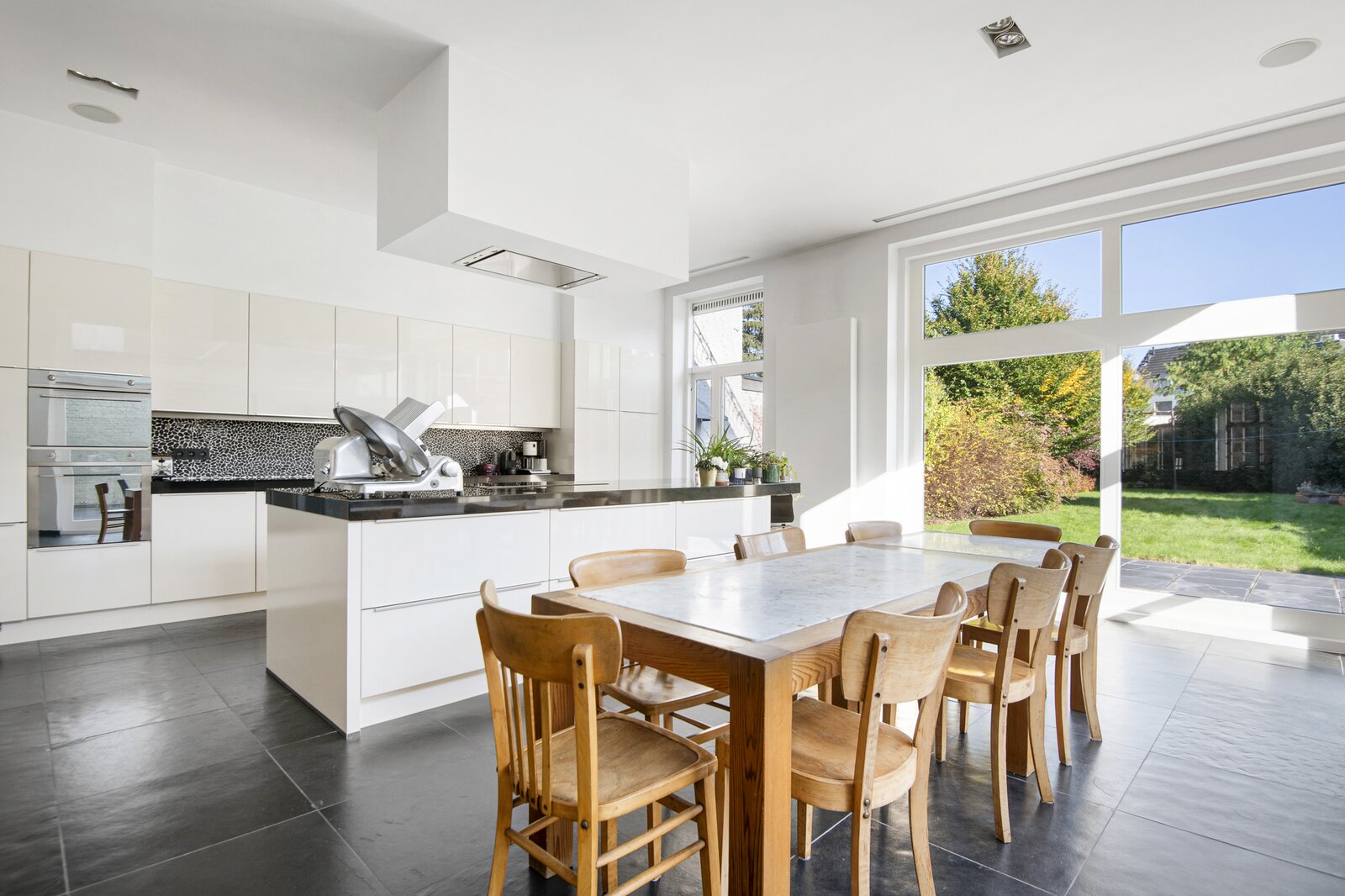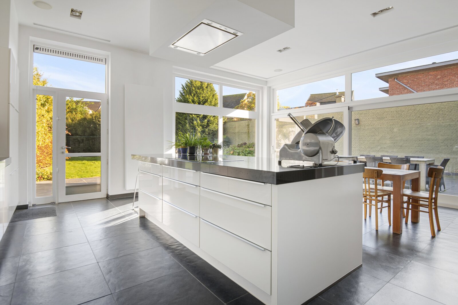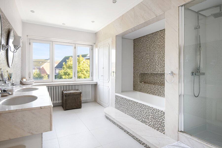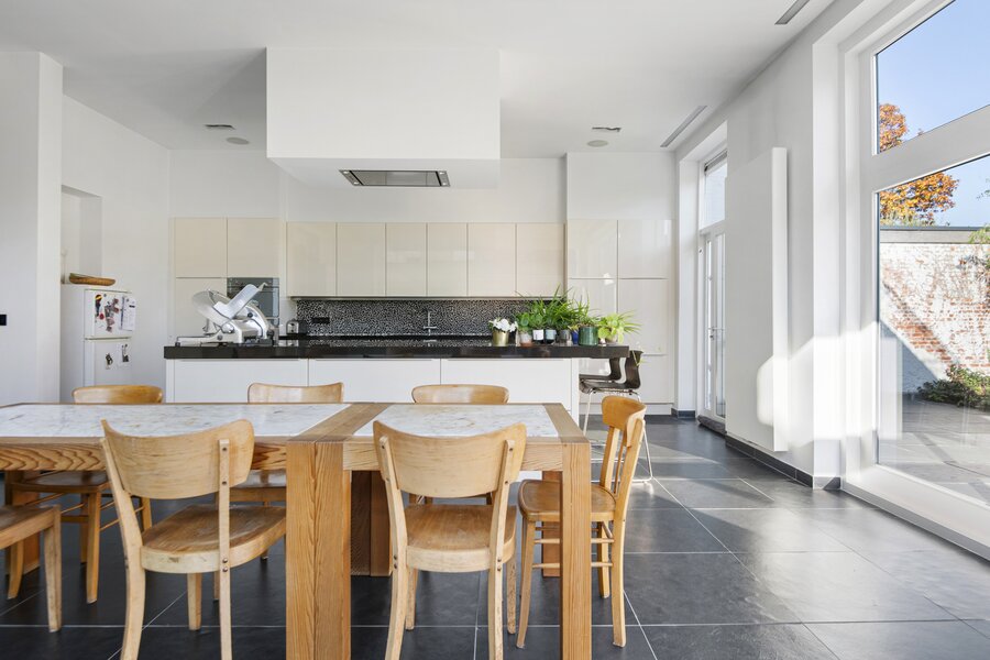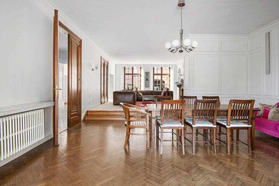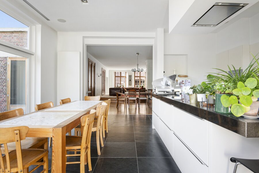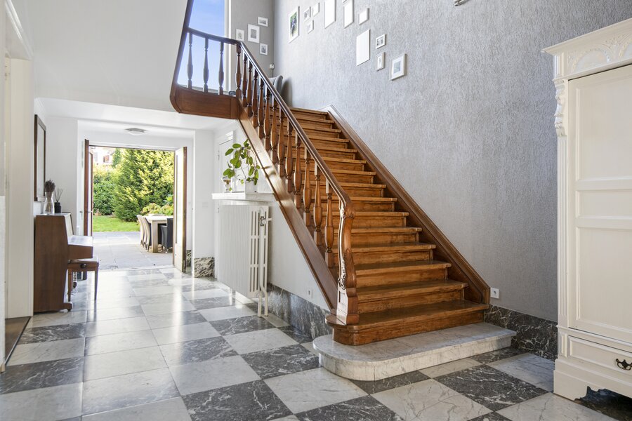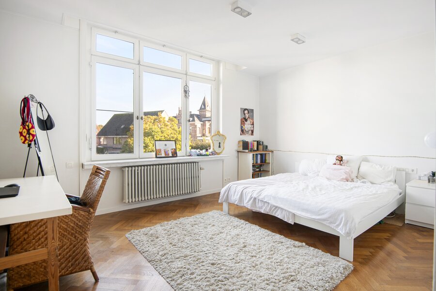 Deze karaktervolle woning biedt alles wat u zich kunt wensen op het gebied van ruimte, comfort en stijl. Gelegen in een rustige en kindvriendelijke buurt, combineert deze woning het karaktervolle met functionaliteit, waardoor het de perfecte plek is voor een groot gezin of voor wie op zoek is naar extra ruimte om te werken en te ontspannen. Bij binnenkomst komt u in een ruime en lichte inkomhal, die meteen indruk maakt door de grote, elegante trap die naar de bovenverdieping leidt. De grote living biedt een gezellige sfeer door de sfeervolle open haard, ideaal voor gezellige avonden in de winter. De ruime eetkamer biedt voldoende ruimte voor een grote eettafel, en de keuken, die is voorzien van alle moderne apparatuur, biedt prachtig uitzicht op de tuin. Door de grote ramen valt er veel natuurlijk licht naar binnen, waardoor het hele huis een lichte en luchtige uitstraling heeft. Verder beneden nog een aparte ruime kamer die momenteel ingericht is als bureauruimte. Op de eerste verdieping vindt u een luxe masterbedroom met ingebouwde kasten en een praktische lavabo alsook een inloopdouche, een perfecte plek om te ontspannen. Daarnaast is er een tweede slaapkamer met ingebouwde kasten, ideaal voor een kind of als logeerkamer. De badkamer op deze verdieping is voorzien van een dubbele lavabo, een ligbad en een inloopdouche. Verder bevinden zich hier nog 2 volwaardige slaapkamers, elk met voldoende ruimte en veel lichtinval, die de woning tot een perfect gezinshuis maken. De woning heeft ook een ruime zolder, die veel mogelijkheden biedt voor uitbreiding, opslag of bijvoorbeeld het creëren van een extra slaapkamer of werkkamer. Ook beschikt de woning over een inpandige garage. Deze extra ruimte is een belangrijk pluspunt voor wie op zoek is naar flexibiliteit en groei. Deze woning biedt niet alleen veel praktische ruimte, maar ook een prachtige setting om van te genieten, zowel binnen als buiten.