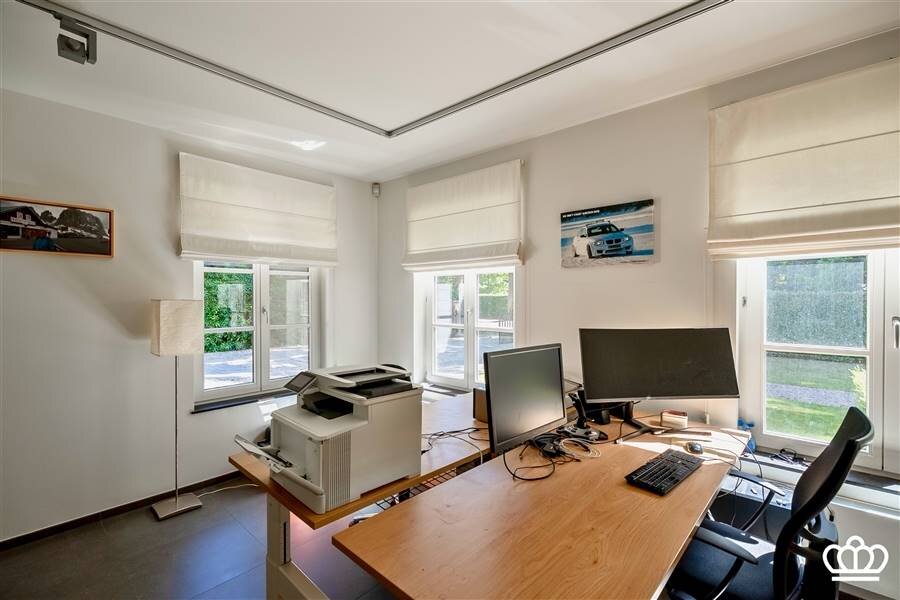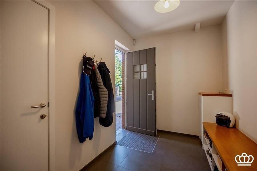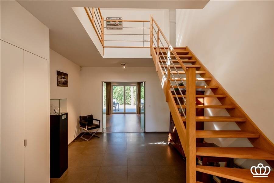 Imposante Inkomhal met trappartij tot aan de 2e verdieping met een ingebouwde vestiaire kast en gastentoilet. Bureel met ingemaakte kasten