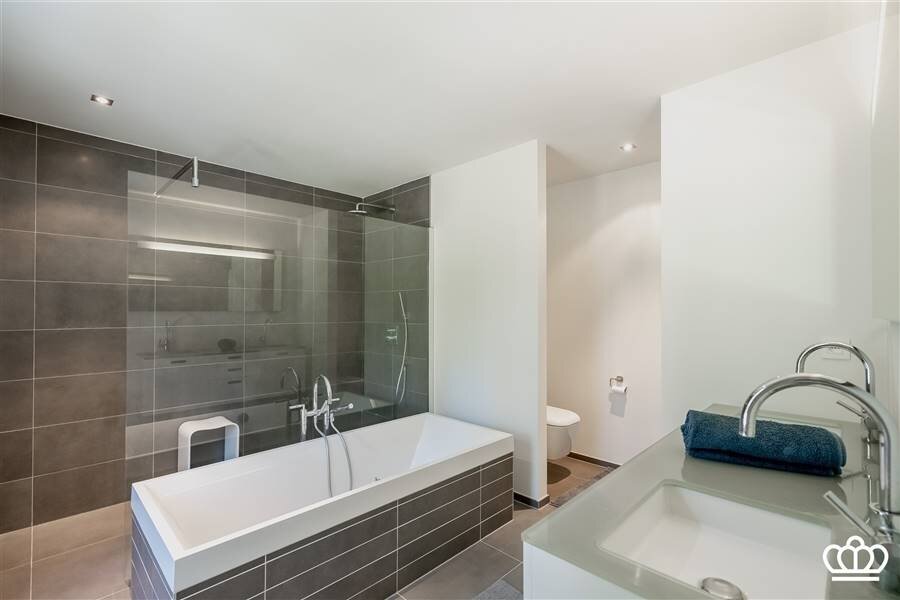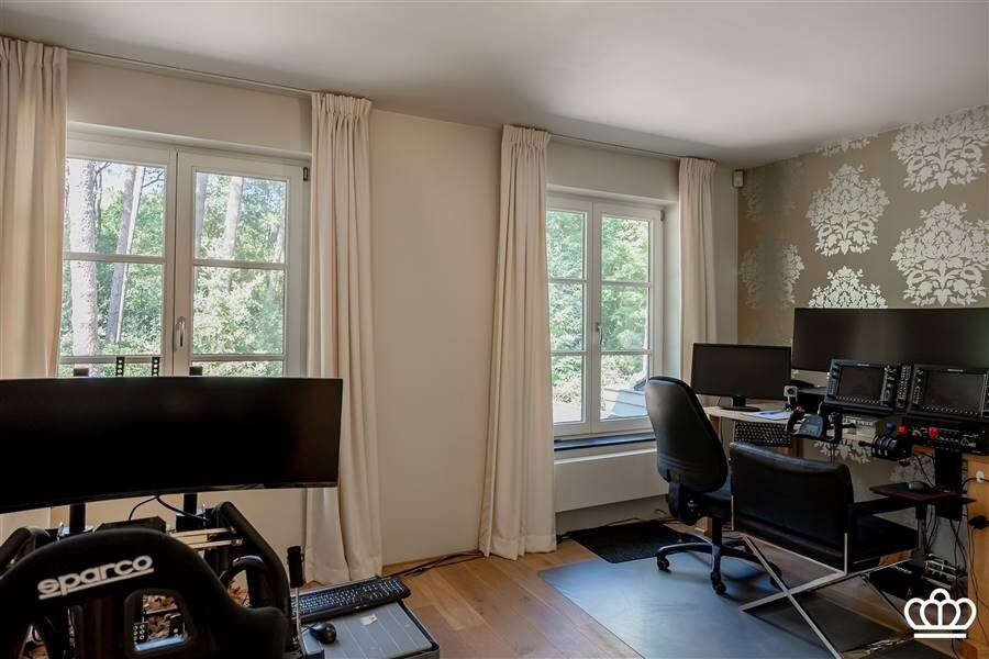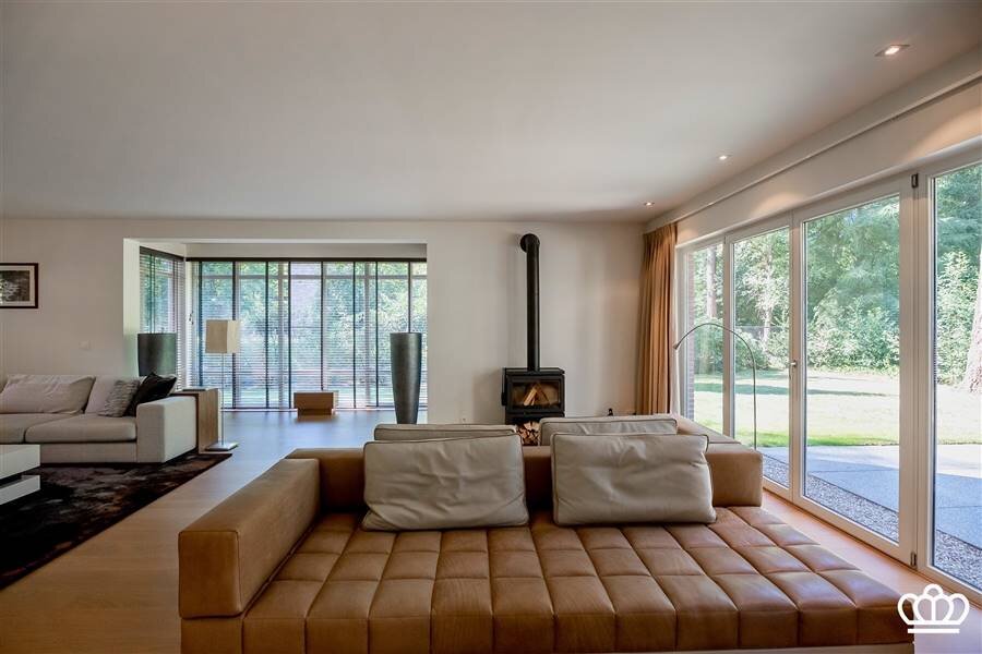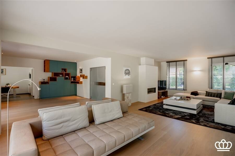 Residentieel gelegen luxe villa met o.a. ruime open leefruimtes, 5 slaapkamers, 3 badkamers, bureel en inpandige garage voor 2 wagens.