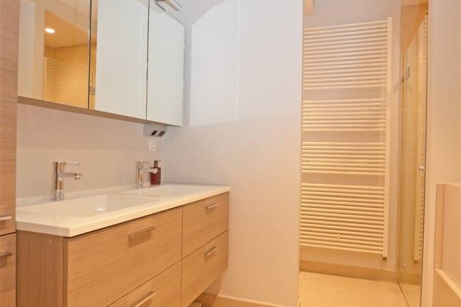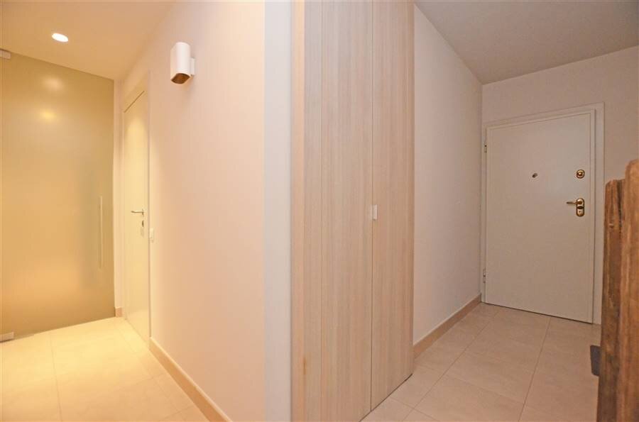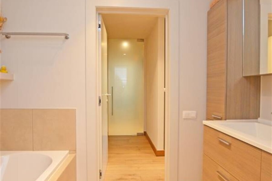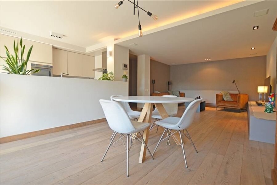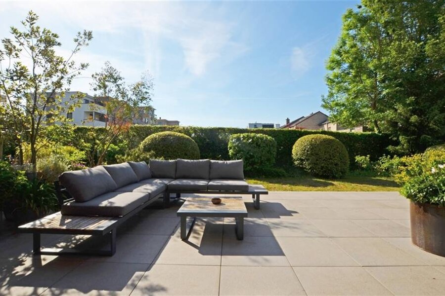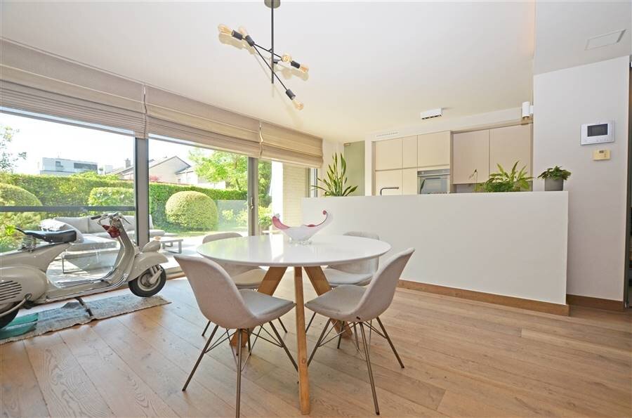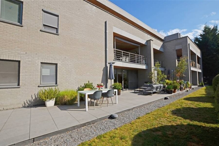 Dit goed onderhouden appartement uit ±2007 is gelegen op het gelijkvloers van een kleinschalige residentie. De kwalitatieve en smaakvolle afwerking zorgen voor een tijdloze stijl. De centrale ligging, de duurzame materialen en de bewoonbare oppervlakte zijn de belangrijkste troeven van dit appartement. De inkomhal met vestiaire en gastentoilet leidt zowel naar het leef- als het nachtgedeelte. De leefruimte omvat een open aaneenschakeling van een gezellige zitplaats, een ruime eethoek en aansluitend een volledig geïnstalleerde keuken met Smeg-toestellen (combi-microgolfoven) en graniet keukentablet die praktisch werd ingedeeld. De warme afwerking en de vele raampartijen geven een zeer huiselijk gevoel. Aansluitend aan de leefruimte is er een bureel.Via een groot schuifraam in de woonkamer is het gelijkvloers terras met tuin bereikbaar. Hier kan er volop genoten worden van de zuidoriëntatie. Verder zijn er een praktische berging en een aparte wasplaats met technische ruimte. Het volledige appartement werd voorzien van inbouwkasten. Het nachtgedeelte bestaat uit een master met inloopdressing, een tweede slaapkamer en een badkamer met ligbad, douche, dubbele wastafel en toilet. Bij het appartement horen er een garagebox, een kelderberging én twee autostaanplaatsen in de ondergrondse parkeergarage. Gemeenschappelijke fietsenberging is ook aanwezig.