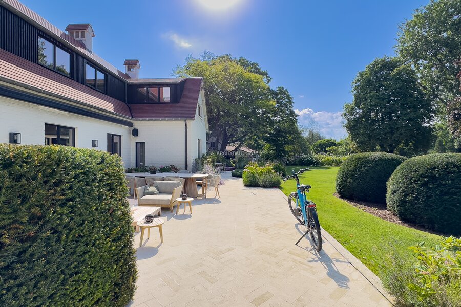 A Meise, aux portes de Bruxelles, découvrez une propriété d'exception où raffinement et confort se conjuguent harmonieusement. Nichée dans un écrin de verdure préservé, cette villa contemporaine, entièrement rénovée avec des matériaux nobles et des prestations haut de gamme, s'étend sur un magnifique parc paysager de près de 2 ha. Veritable havre de pais. La villa principale développe 785 m² et la conciergerie 115 m². Piscine, pool house, piste d'atterrissage, système domotique, caméras de surveillance, arrosage automatique, panneaux solaires. Possibilité d'acquisition du mobilier (350.000 €). Faire offre à partir de 9.000.000 €. Vente sous forme de rachat de parts de société.