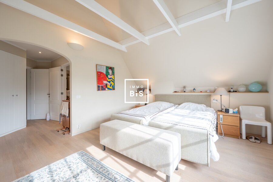 Étage supérieur : palier avec toilettes. Chambre principale avec salle de bains attenante (baignoire, douche, toilettes et double lavabo). 3 chambres à coucher complètes, chacune avec des armoires encastrées et leur propre salle de douche. Grenier très spacieux.