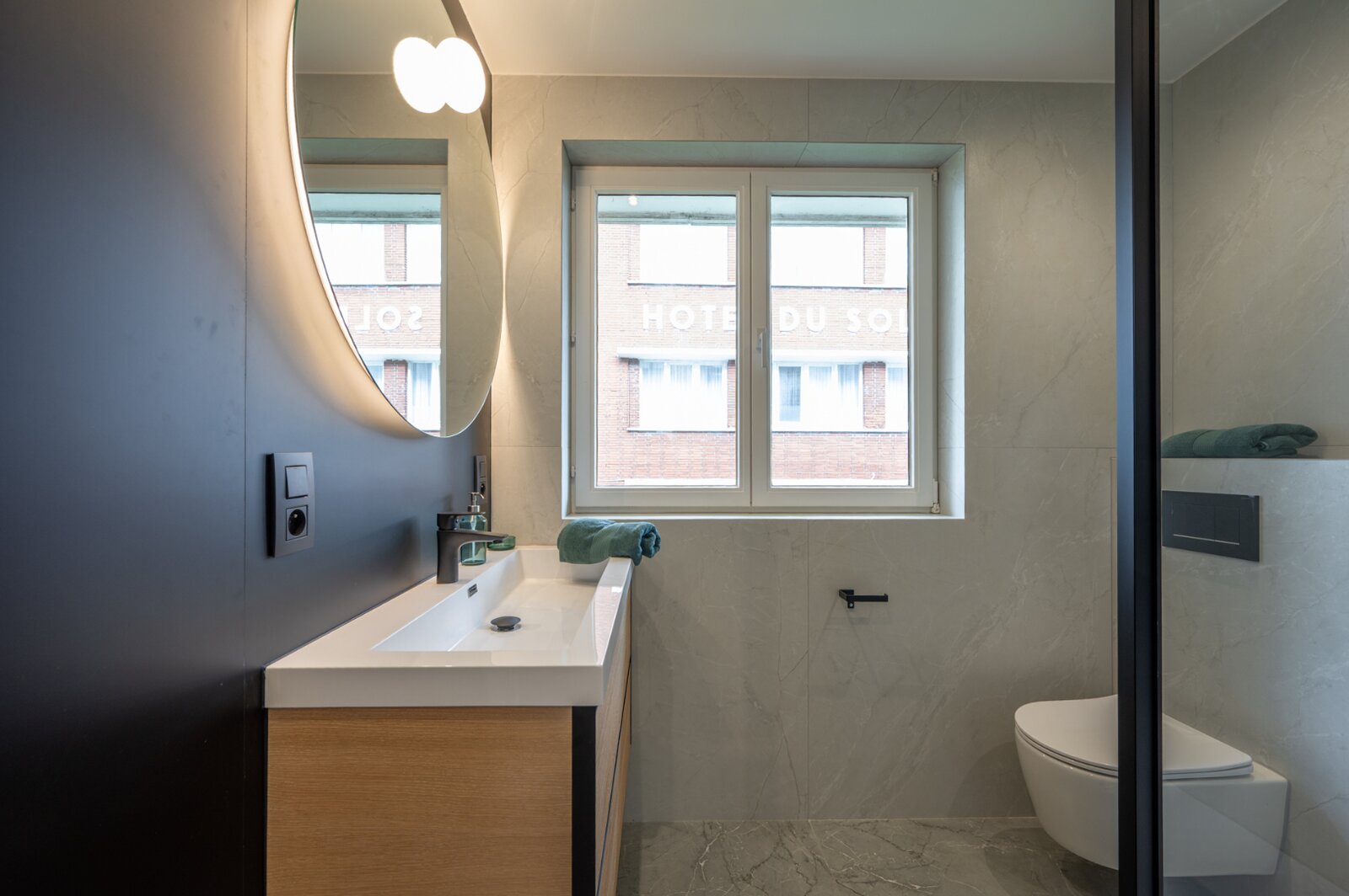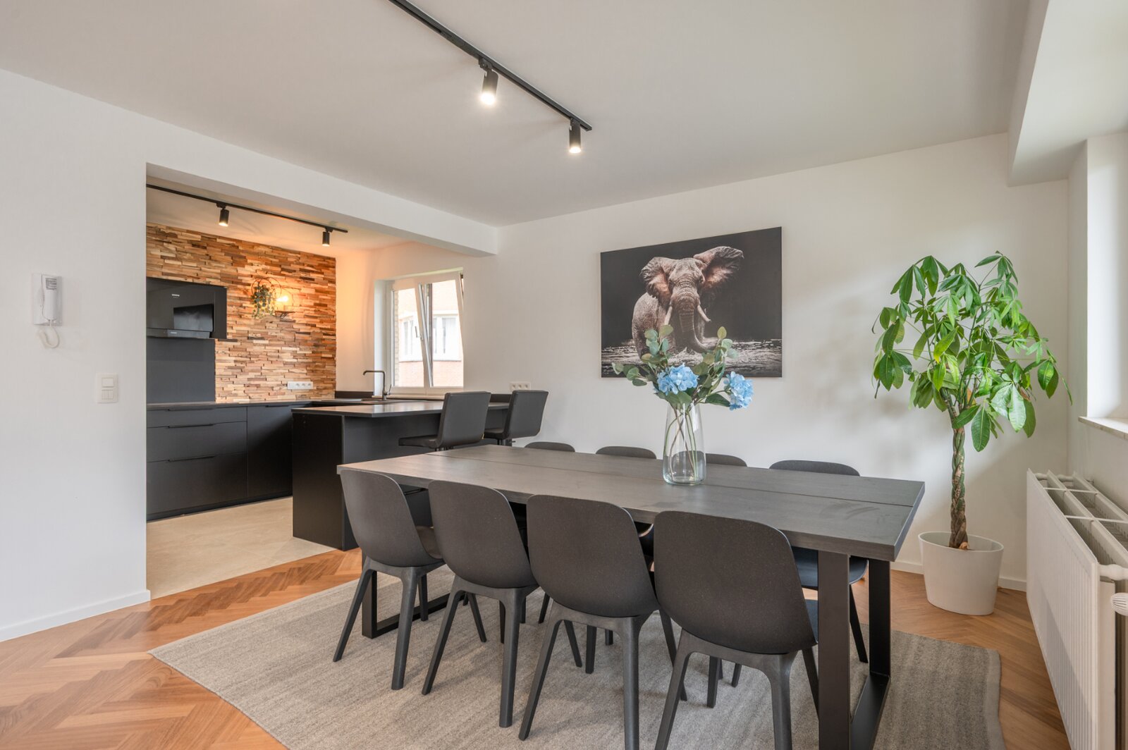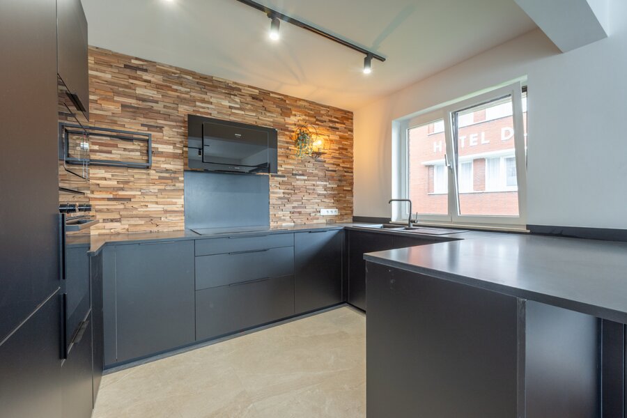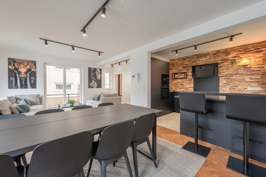 L'appartement dispose d'une cuisine ouverte entièrement équipée, qui s'intègre parfaitement au spacieux salon. Grâce à son agencement bien pensé et à ses finitions de haute qualité, vous profiterez ici d'une expérience de vie élégante et pratique.