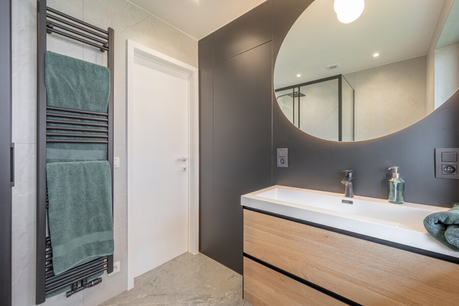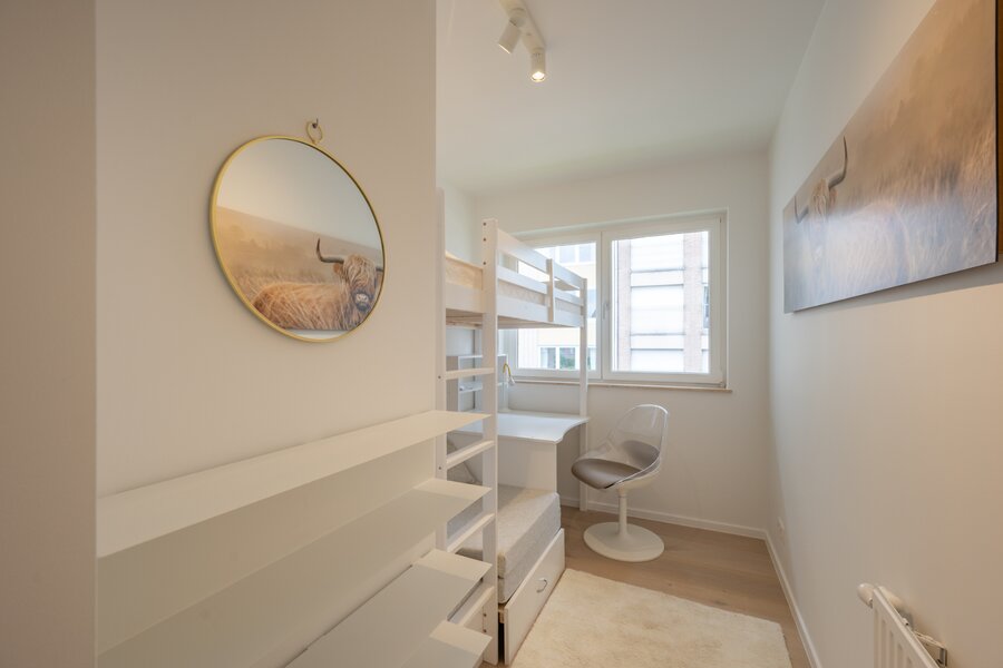 Avec trois chambres spacieuses et deux salles de bains modernes, cet appartement offre tout l'espace dont une famille ou un résident secondaire a besoin. De plus, une cave et un local à vélos sont inclus, ce qui augmente encore le confort de vie.