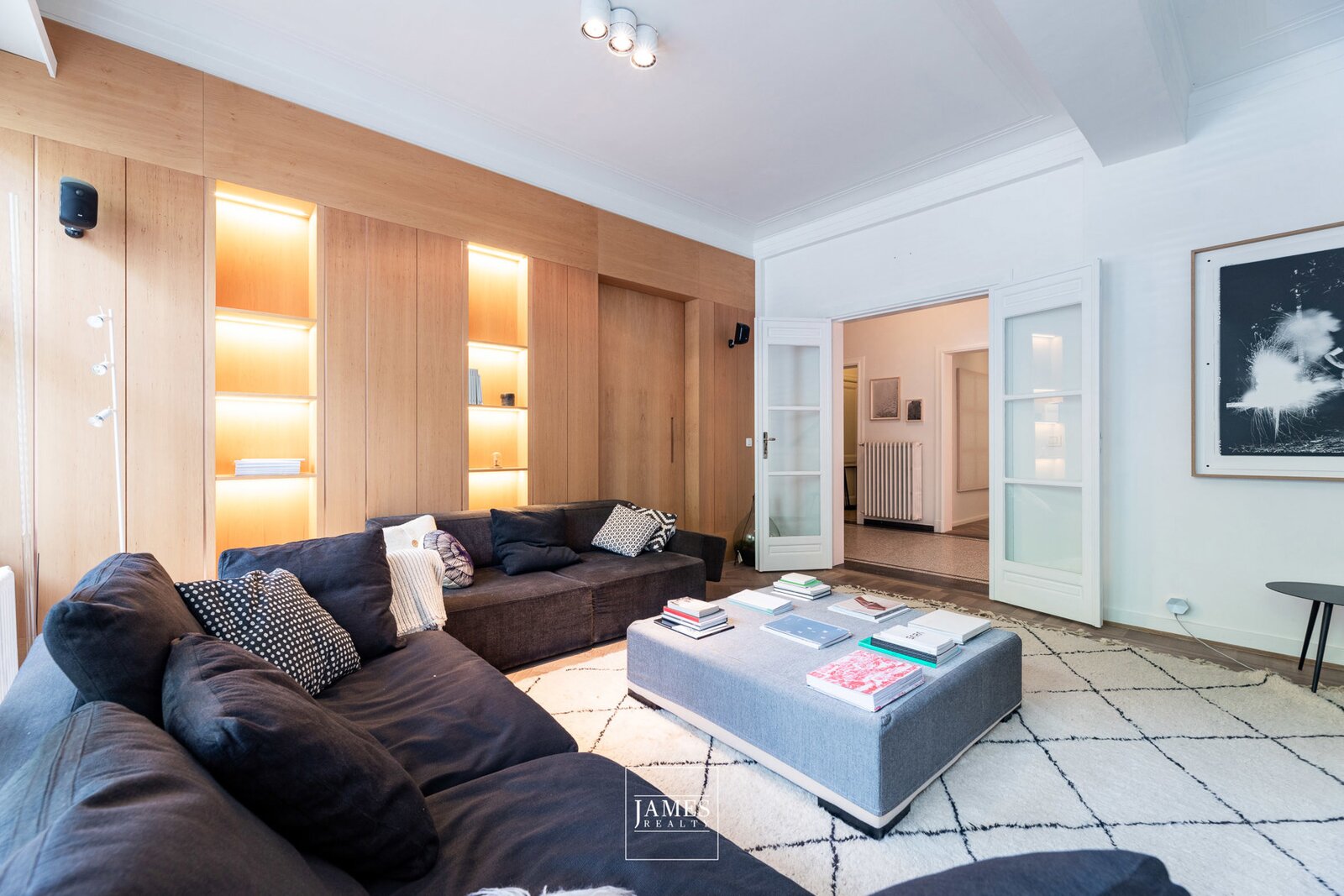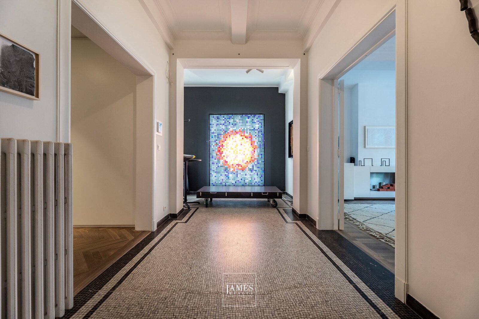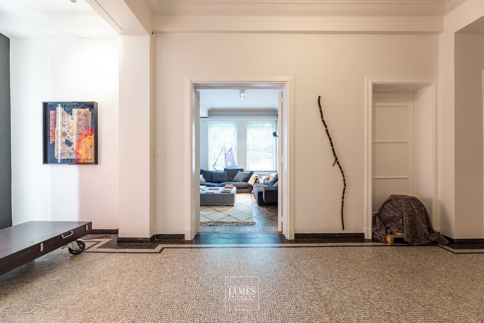Face au site classé de l'Abbaye de la Cambre, superbe appartement de +- 233m2 bruts rénové avec goût et caractère. On y retrouve, passé le hall d'entrée, un grand salon avec sa partie bureau ou salon TV, une cuisine dînatoire hyper-équipée et sa salle à manger s'ouvrant sur un ravissant patio. la partie nuit compte deux chambres en suite dont la suite parentale avec son dressing et sa salle de bains complète. Un studio indépendant entièrement rénové par un architecte de 60m2 complète cet appartement (en option au prix de 300.000€) On accède à un ravissant petit jardin privatif via la partie nuit. Nombreux rangements sur-mesure, cave et bel emplacement de parking.