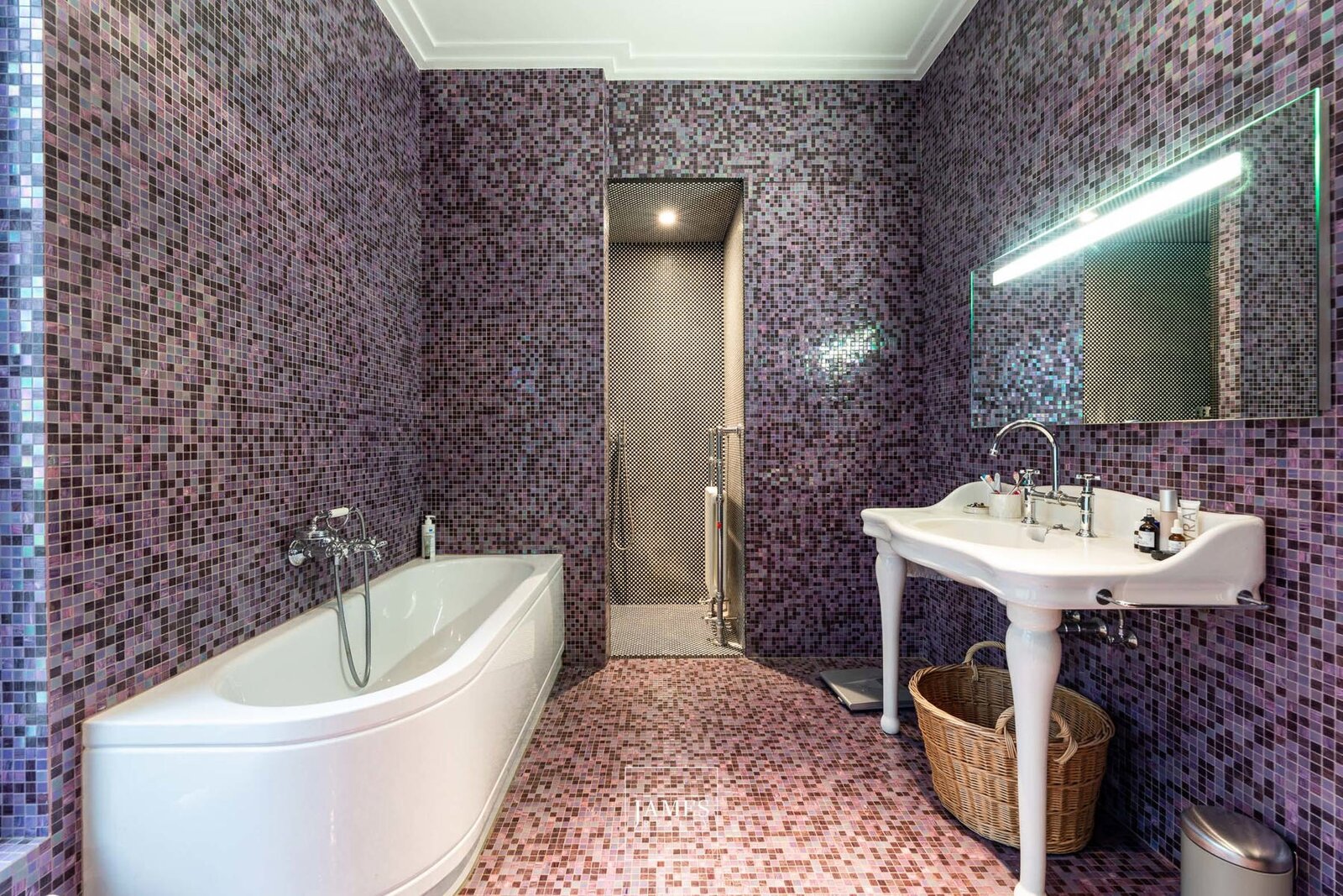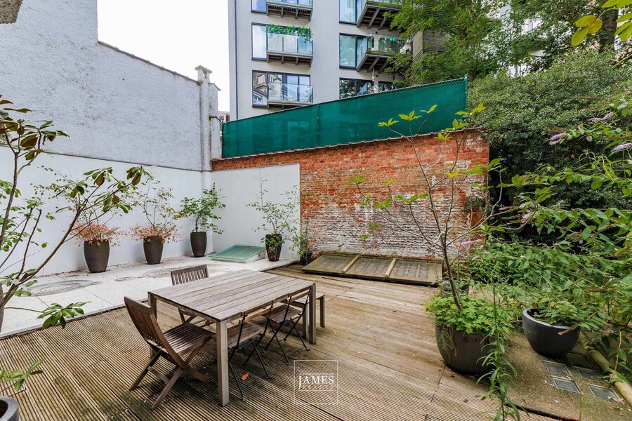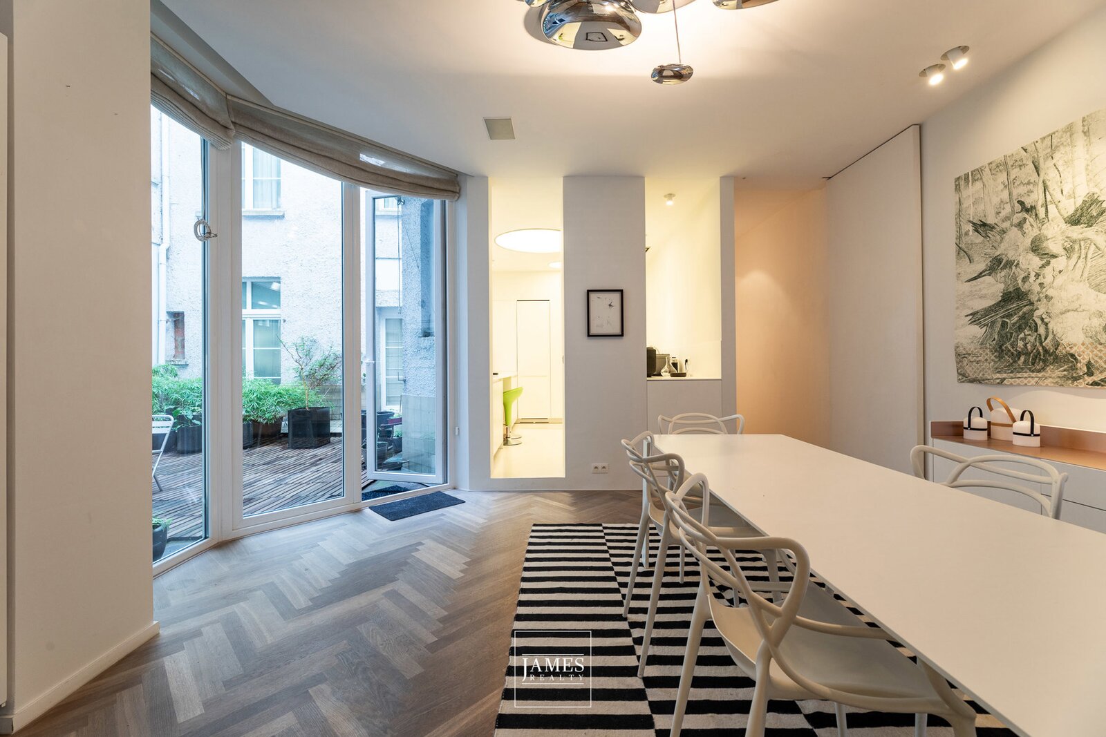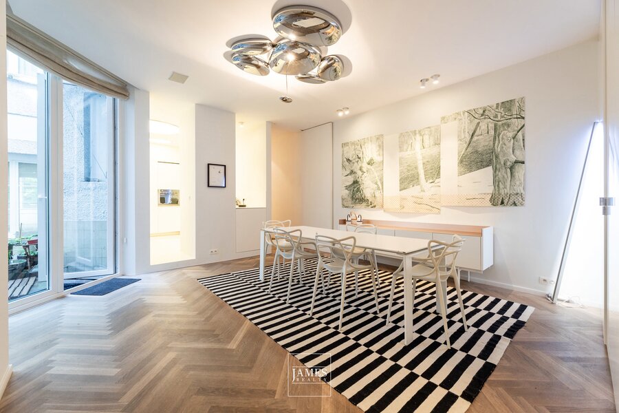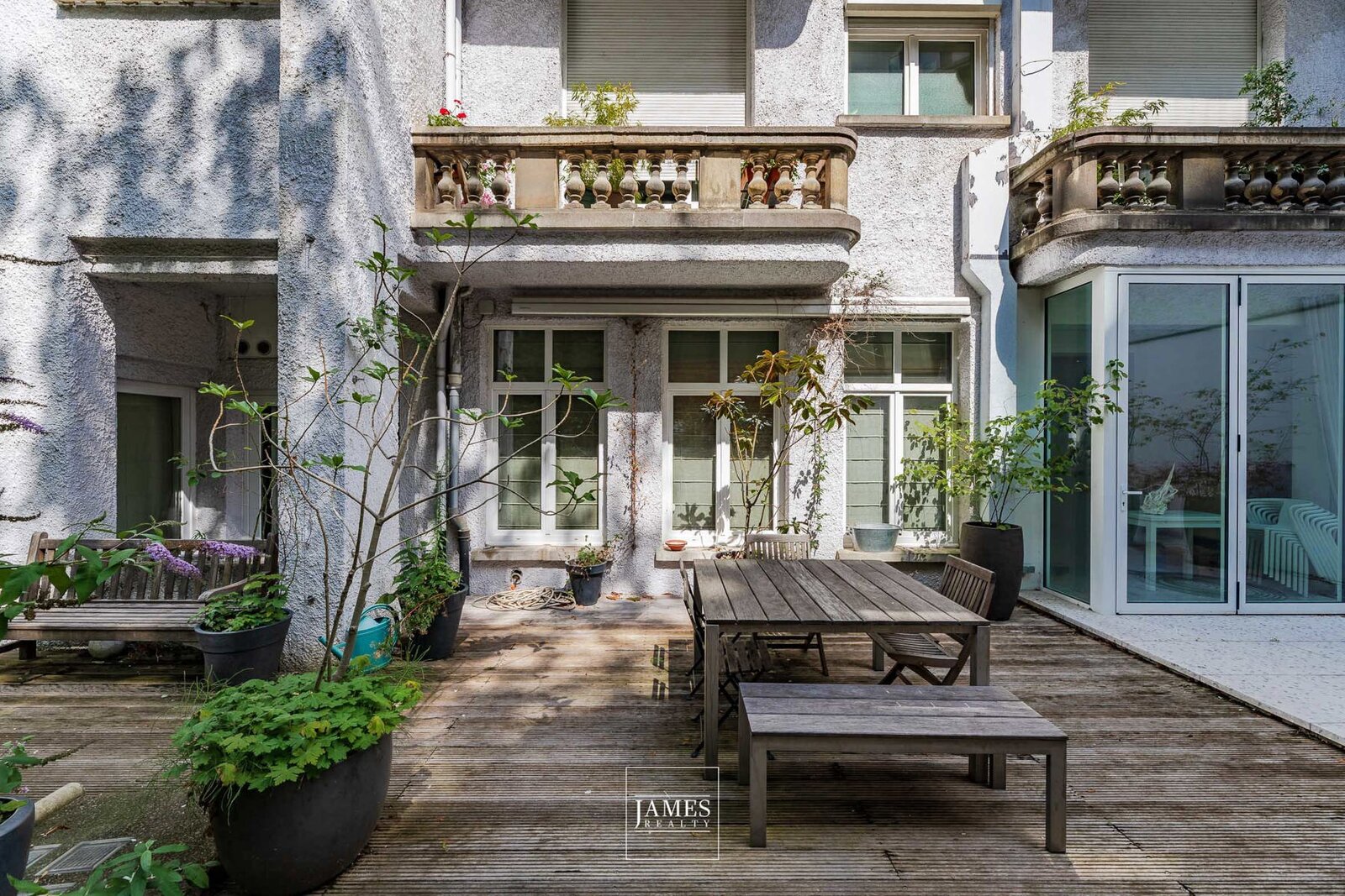 Face au site classé de l'Abbaye de la Cambre, superbe appartement de +- 233m2 bruts rénové avec goût et caractère. On y retrouve, passé le hall d'entrée, un grand salon avec sa partie bureau ou salon TV, une cuisine dînatoire hyper-équipée et sa salle à manger s'ouvrant sur un ravissant patio. la partie nuit compte deux chambres en suite dont la suite parentale avec son dressing et sa salle de bains complète. Un studio indépendant entièrement rénové par un architecte de 60m2 complète cet appartement (en option au prix de 300.000€) On accède à un ravissant petit jardin privatif via la partie nuit. Nombreux rangements sur-mesure, cave et bel emplacement de parking.
