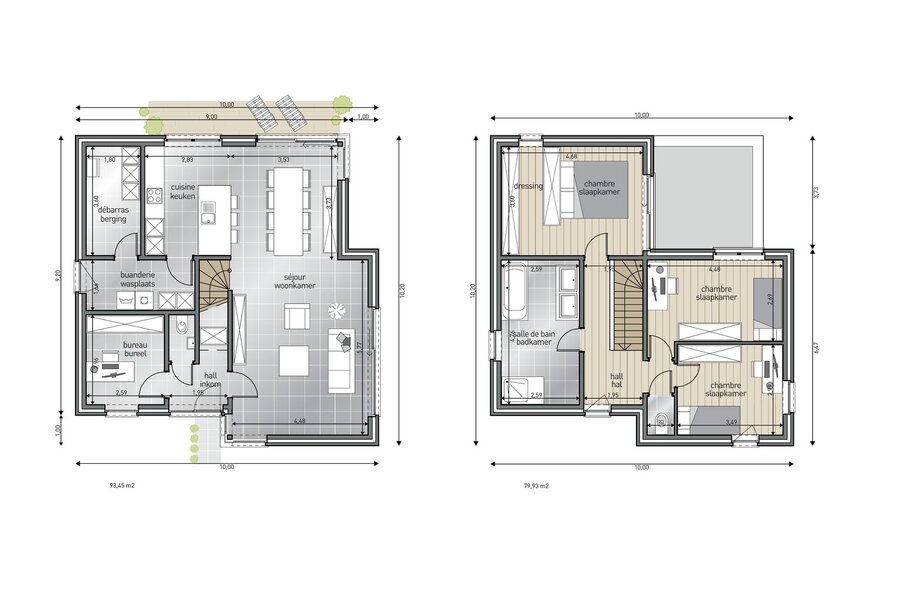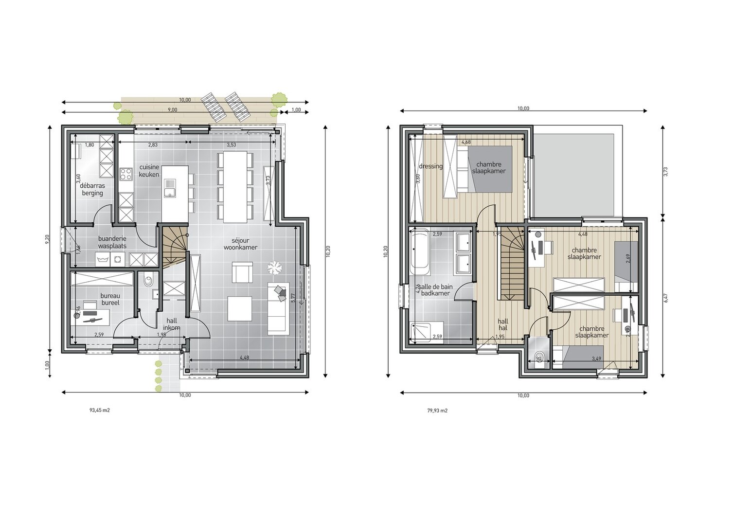 De woning heeft een breedte van 10 meter en een maximale diepte van 10,20 meter, ideaal voor dit perceel. Indien gewenst, kan deze woning ook gebouwd worden met een hellend zadeldak.