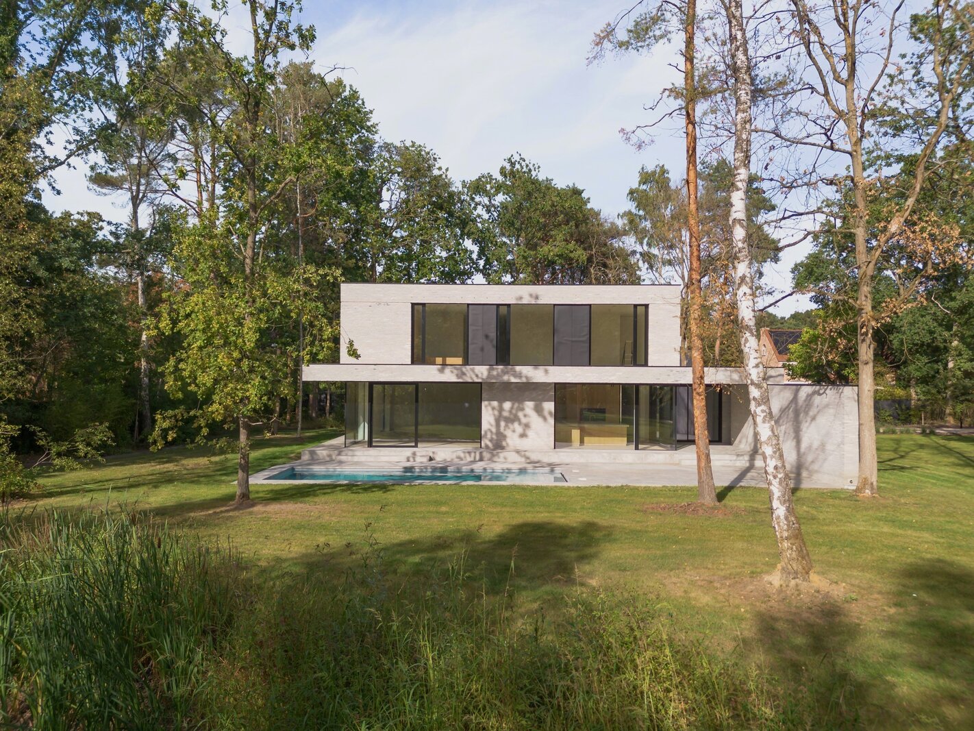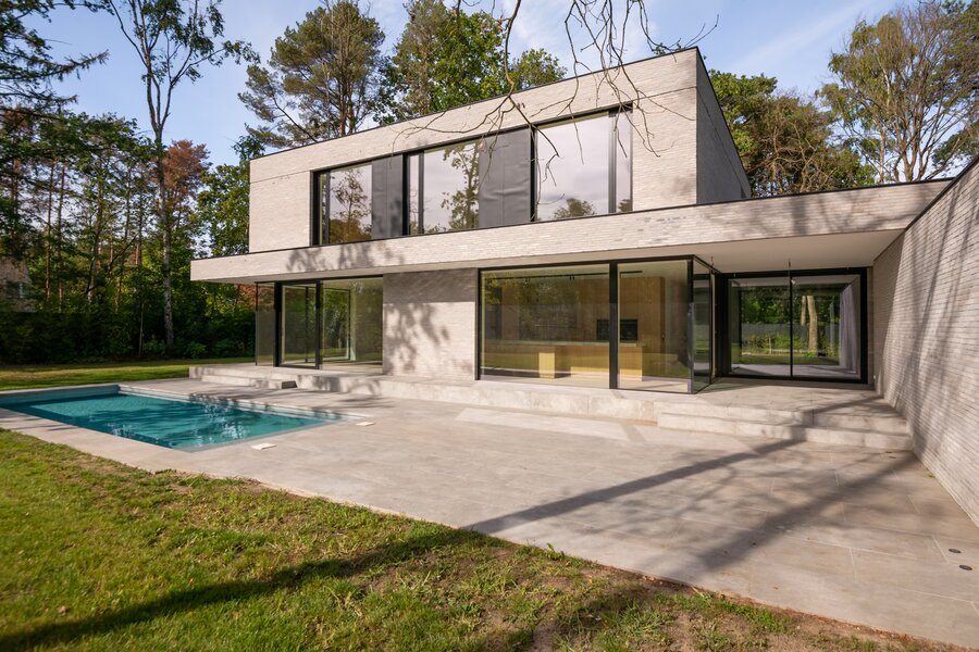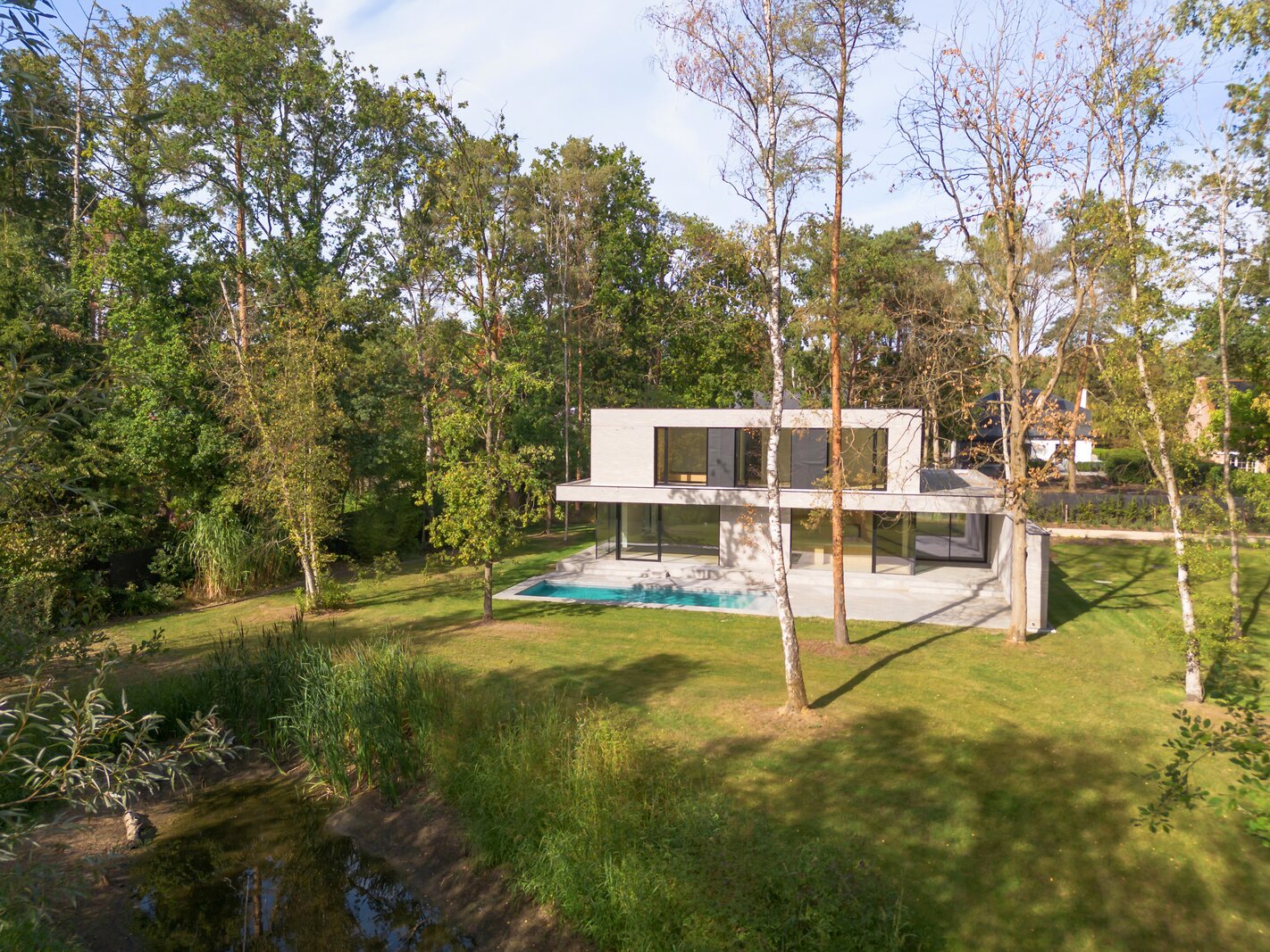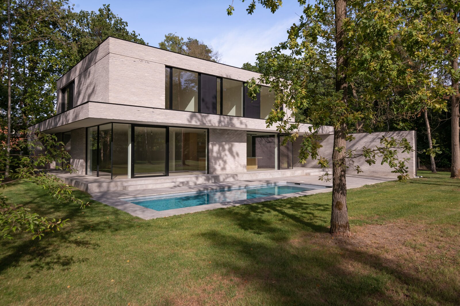 Nouvelle villa moderne avec piscine sur terrain en arrière plan à Keerbergen