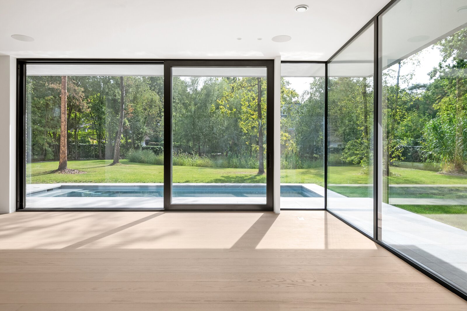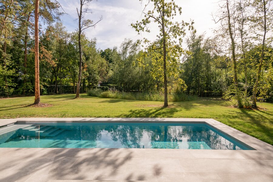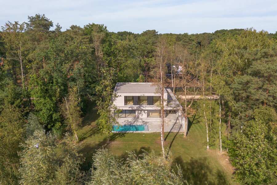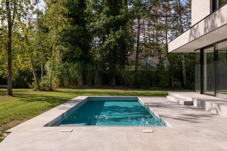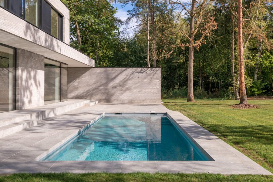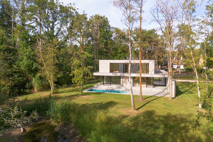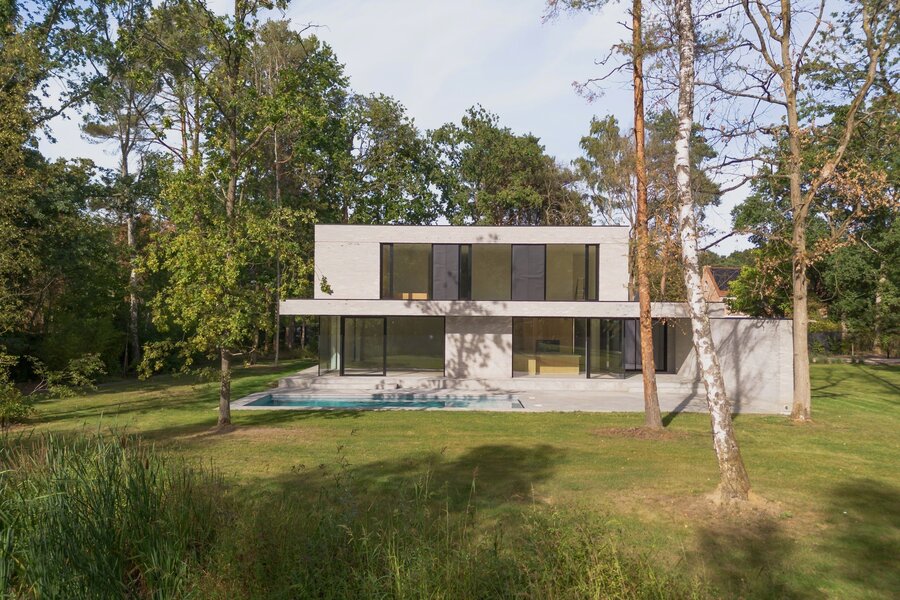 Nouvelle villa moderne avec piscine sur terrain en arrière plan à Keerbergen