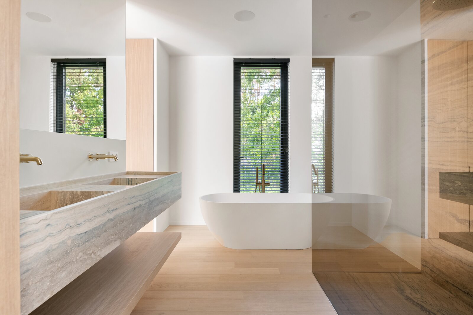 La villa dispose de quatre grandes chambres, chacune conçue avec un souci de tranquillité et de confort. La suite parentale bénéficie d'une salle de bain privée et d'une vue magnifique sur le jardin et la piscine. De plus, il y a deux autres salles de bain entièrement équipées, aménagées de manière élégante et pratique pour toute la famille. Le bureau séparé rend le télétravail agréable et efficace, tandis que la disposition de la maison garantit une intimité suffisante pour chacun.