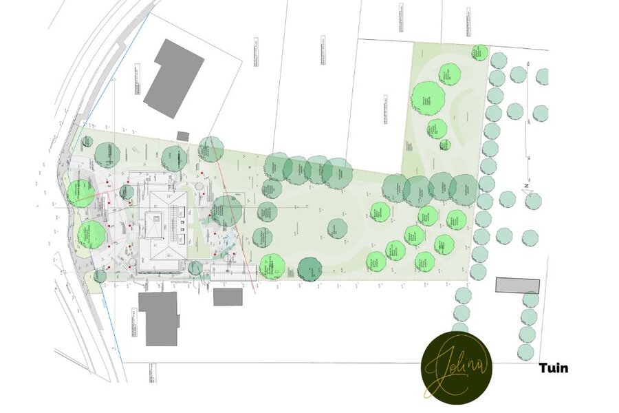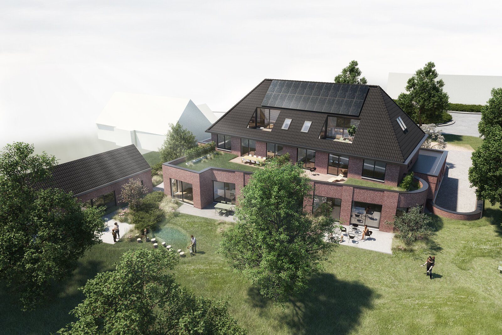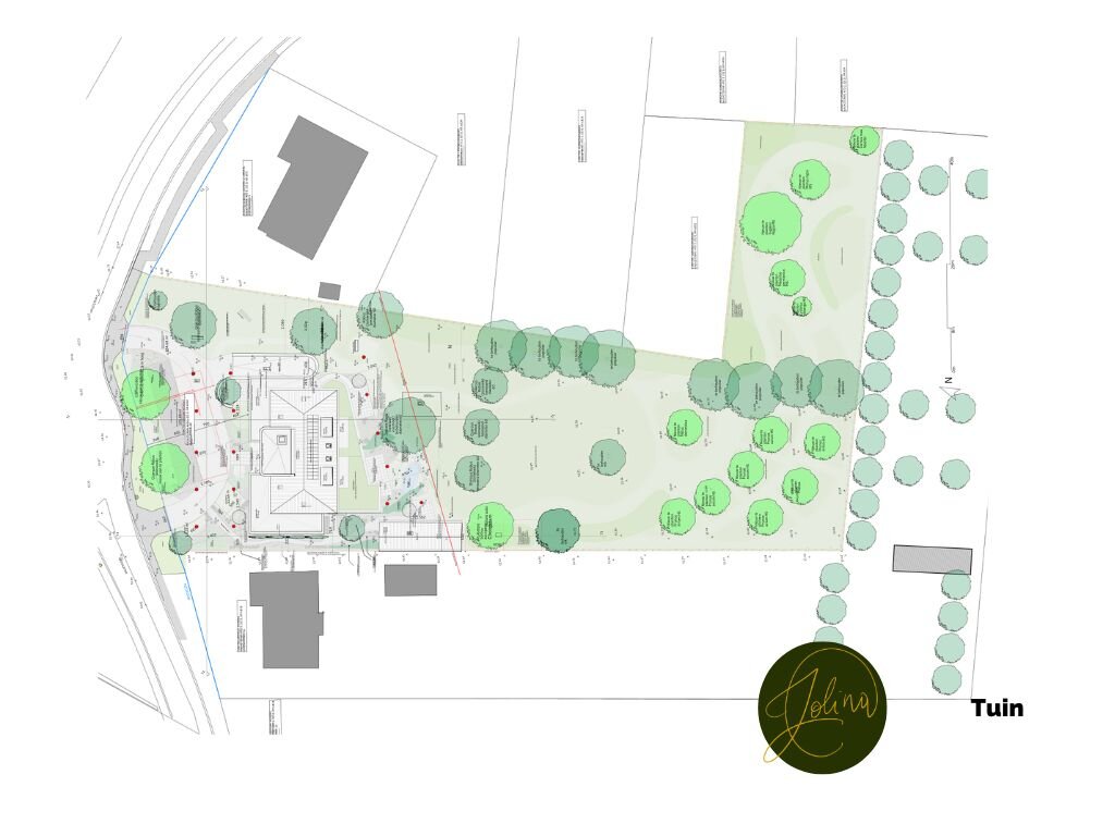 Achter de villa ligt een heel grote mooie tuin en kijk je uit op de groene velden, het uitzicht kan niet mooier zijn.