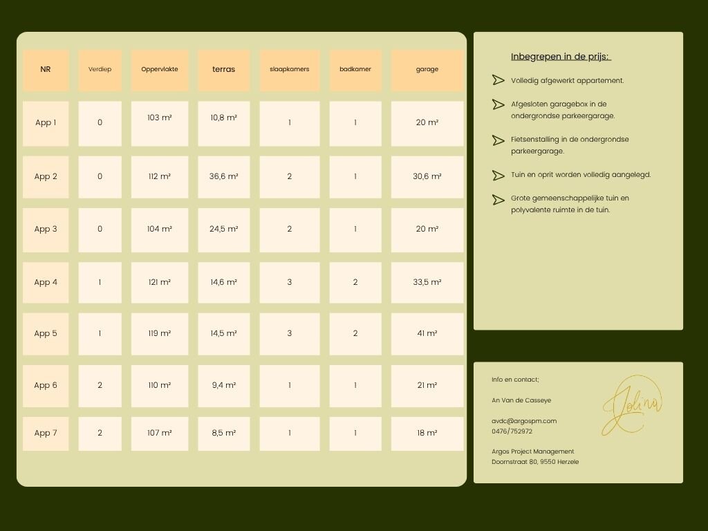 De appartementen zijn uiteraard uiterst energie zuinig met GEO thermische boringen, vloerverwarming, zonnescreens enzovoort voldoen ze aan de nieuwste normen