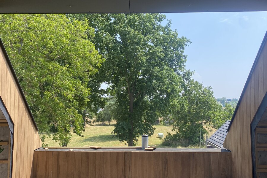 De bouw is momenteel in afwerkingsfase, de eerste appartementen worden begin 2026 opgeleverd.