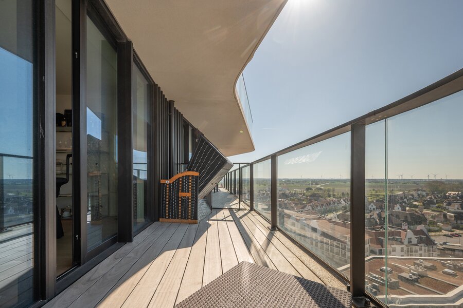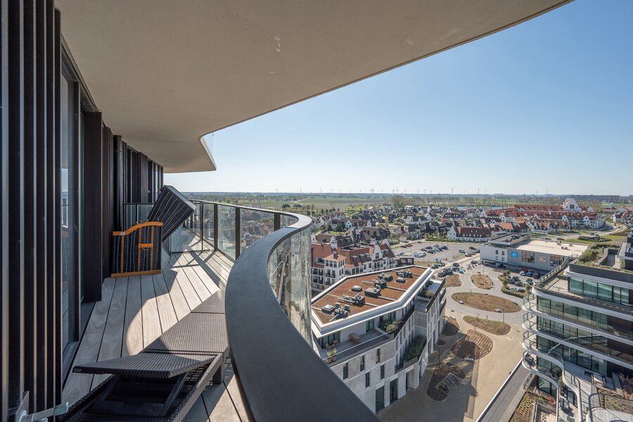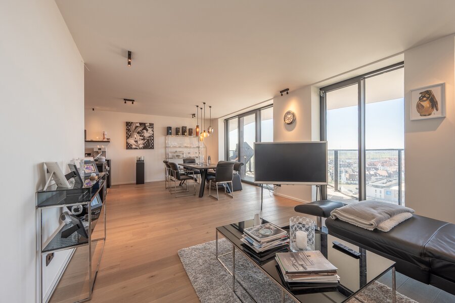 Découvrez ce superbe appartement neuf situé au 10e étage de la résidence élégante The Tower, dans le quartier prisé de Duinenwater à Knokke.